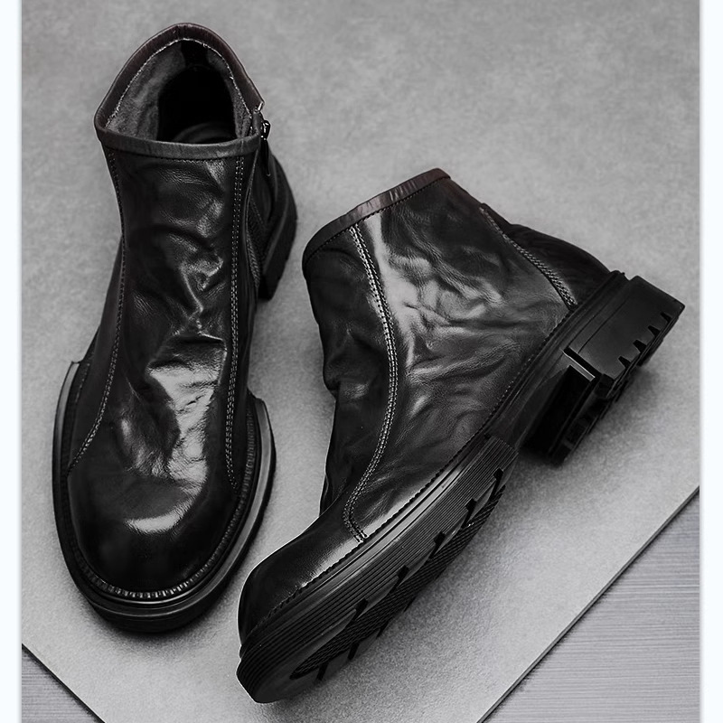 真皮马丁靴男士秋季时尚高帮户外皮靴冬加绒拉链切尔西靴潮流男靴