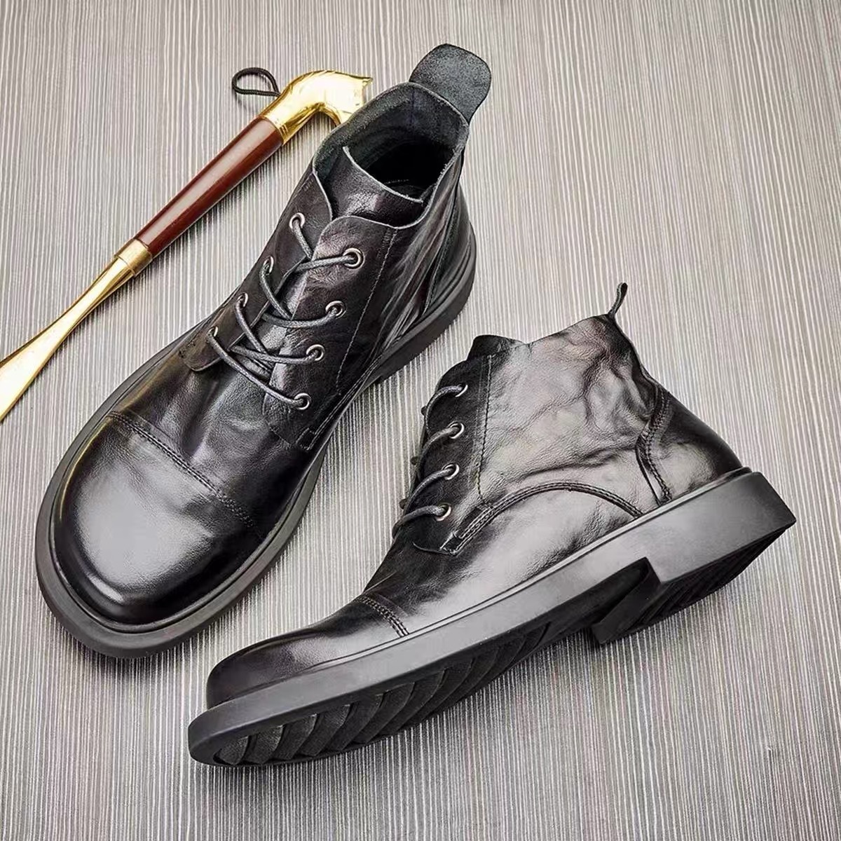 本革一層牛革ハイカットレザーブーツメンズ秋冬裏起毛英国風レトロマーティンブーツチェルシーカジュアルショートブーツ