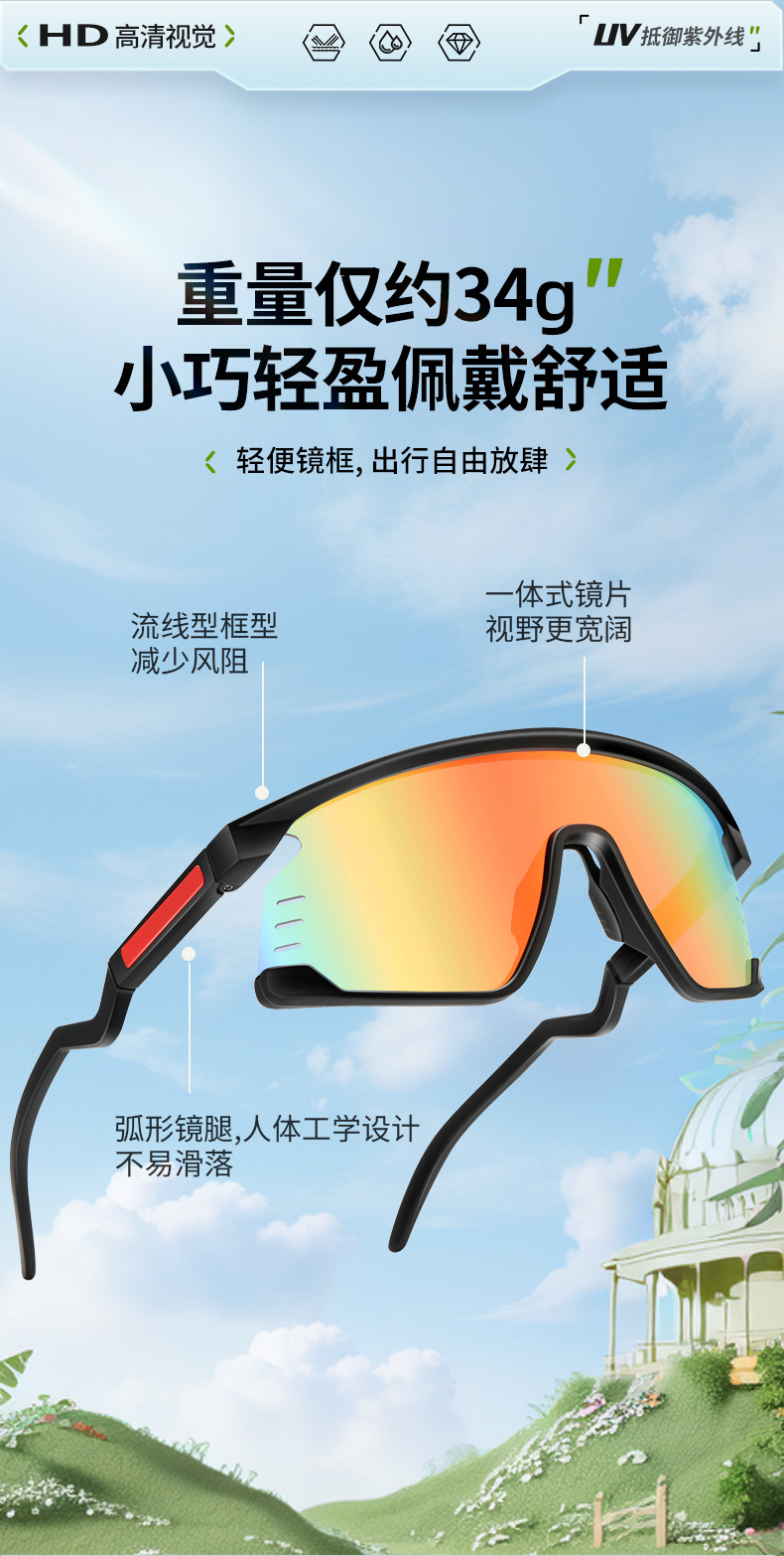 クロスボーダーアウトドアスポーツサングラス女性一体式専門騎乗メガネ男性徒歩登山光沢反射防風鏡