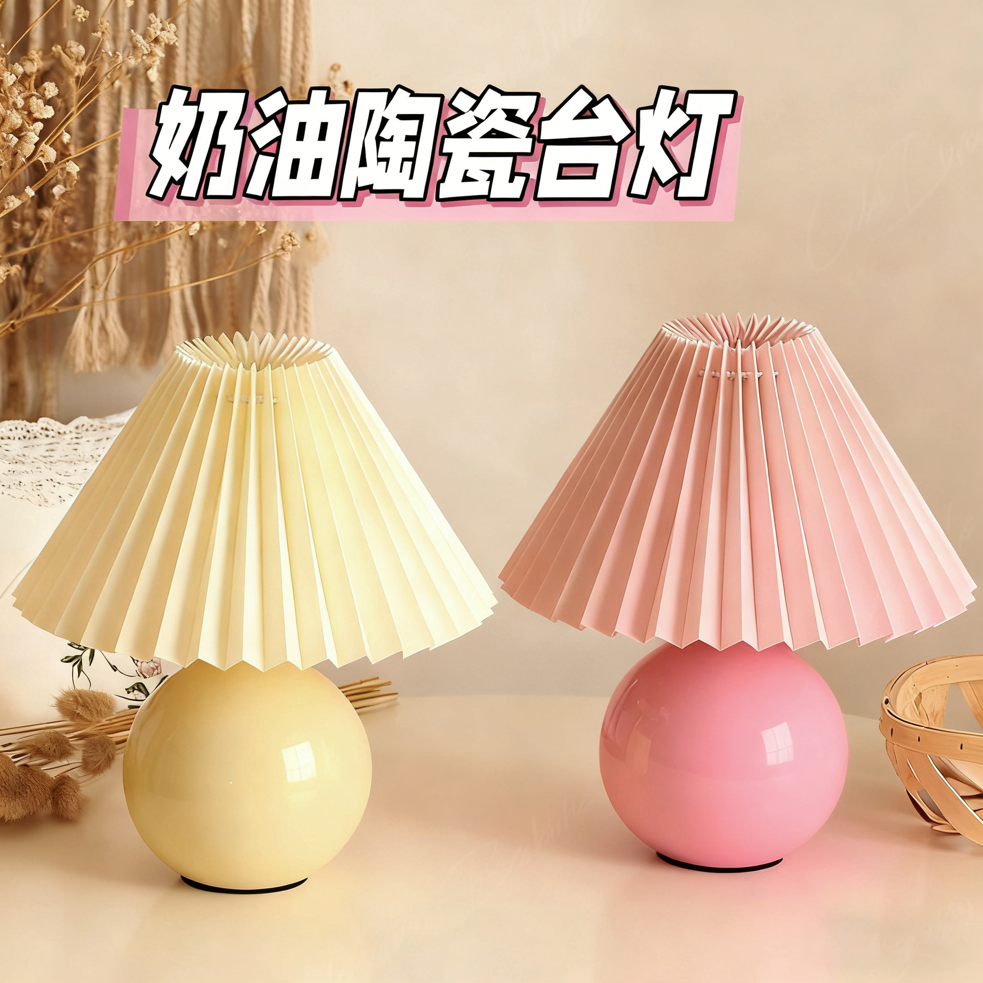 北欧陶磁器百シワ電気スタンドレトロins雰囲気寝室ベッドヘッドランプ少女暖かい授乳シンプルなナイトライト