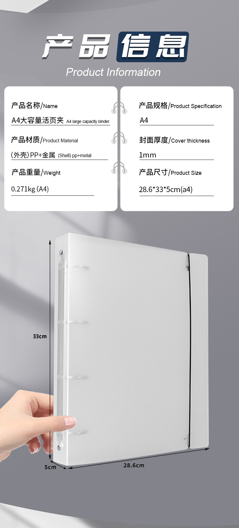 PPストラップ付きA4ルーズリーフフォルダー、4穴クイックフォルダー、テスト用紙収納フォルダー、大容量O型穴あきオフィス情報フォルダー