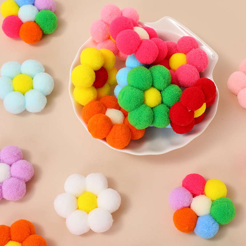 毛玉、小さな花、カラフルな花の毛玉、手作り DIY アクセサリー、高弾性毛玉、人形の衣類アクセサリー