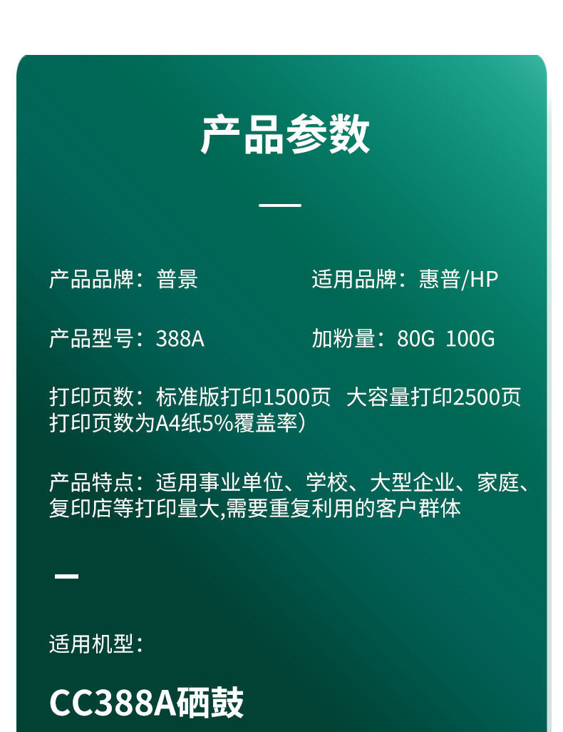 普景適用hp m1136mfpプリンタトナーp1106 1108 m126a 388aトナーカートリッジトナー