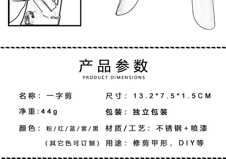 甲切りナイフ美甲店専用平口一字切りU型光治療延長甲はさみ工具平口U型切り