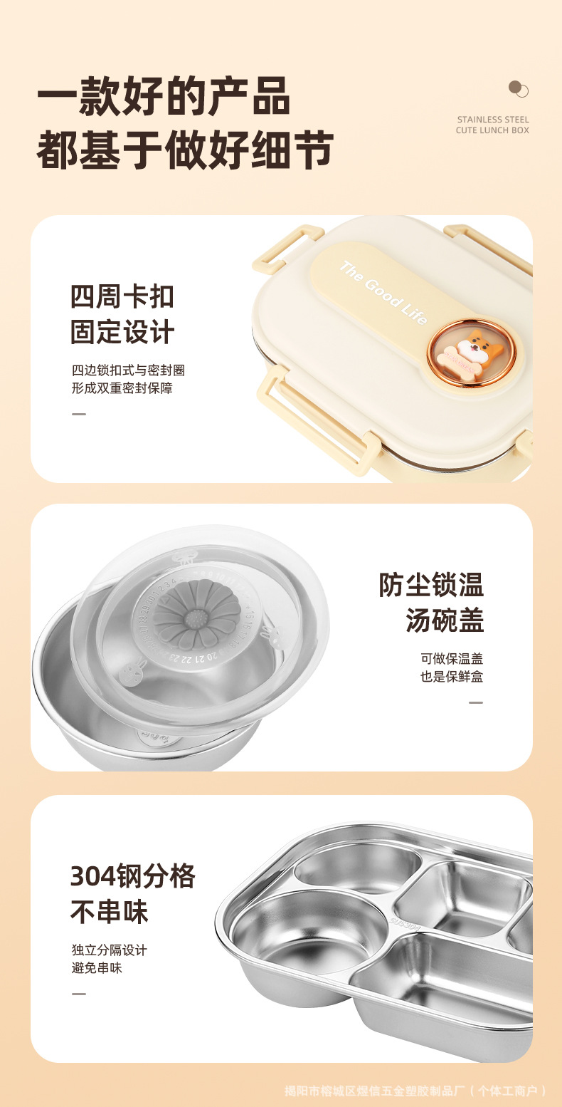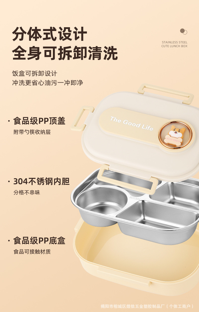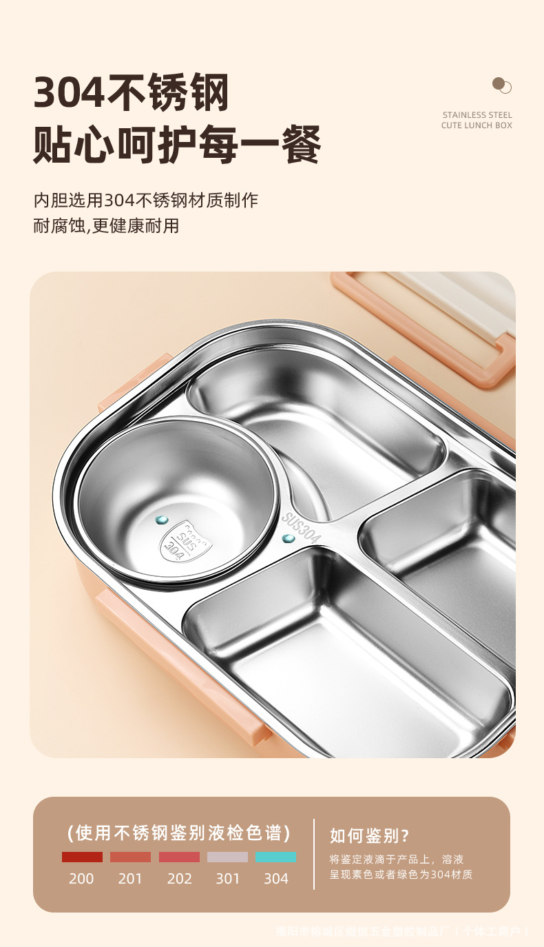 児童弁当箱316ステンレス分格弁当箱サラリーマン学生専用食堂食事箱食器付き