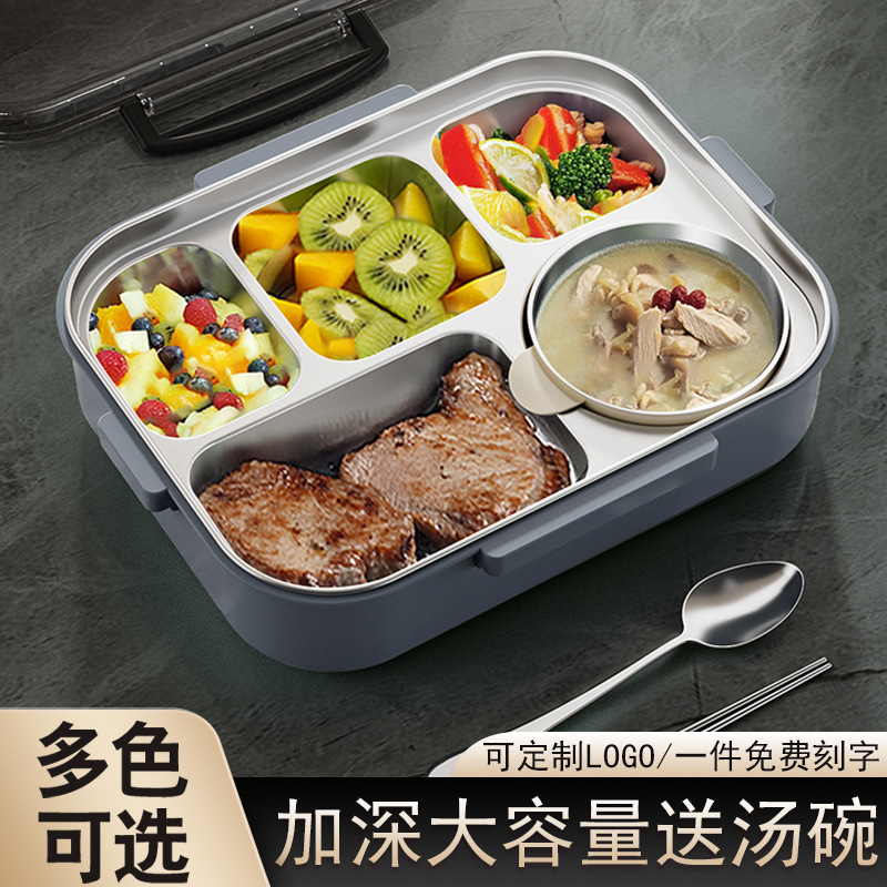 316不锈钢五格加深大容量饭盒上班餐盒套装高中学分格餐盘微波炉