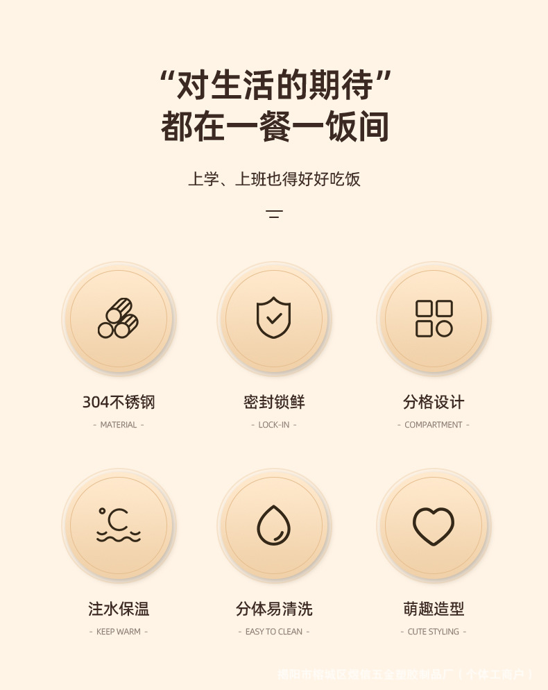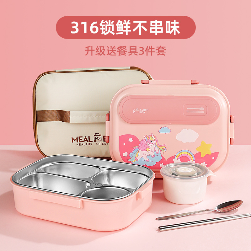 316不锈钢饭盒上班族小学生专用卡通大容量分格便当盒高颜值餐盒