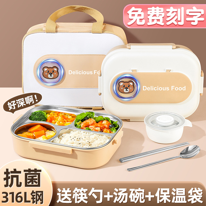 316Lステンレス保温弁当箱小学生専用子供弁当箱男の子女の子かわいい分格食事皿出勤