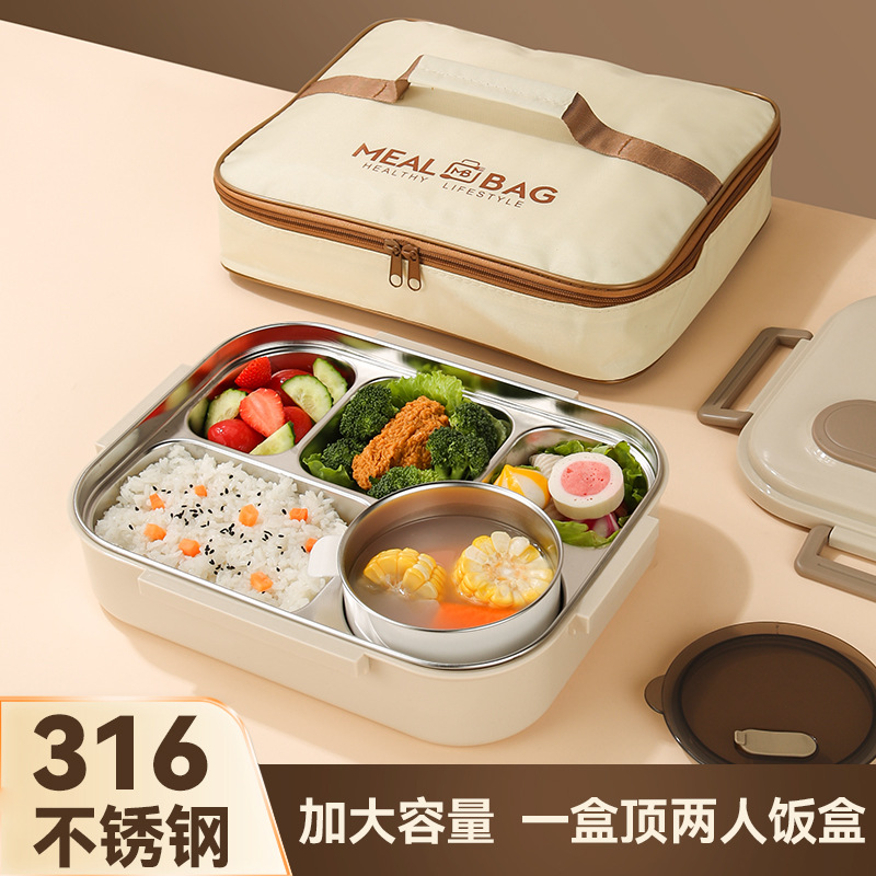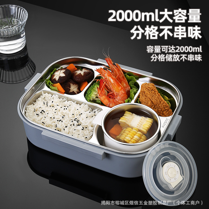 蓋付き大サイズ5格弁当箱スープ付きサラリーマン食堂弁当箱保温316ステンレス弁当箱大容量