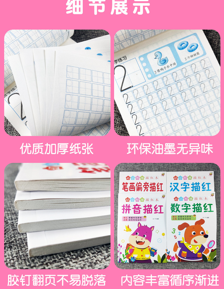 幼小衔接描红本幼儿园练字帖儿童练字本数字拼音汉字笔画偏旁描红