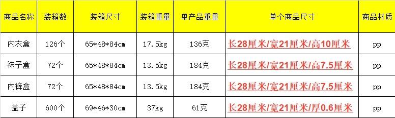 サイズ 下着箱【蓋付き】箱の中に仕切りなし,下着箱【蓋付】箱内10仕切,靴下箱【蓋付】15仕切入り,蓋,靴下箱+下着箱【蓋付き】分類シール付き,靴下箱+下着箱【蓋付き】分類シール付き,下着箱+下着箱【蓋付き】分類シール付き,下着箱+靴下箱+下着箱【蓋付き】分類シール付き