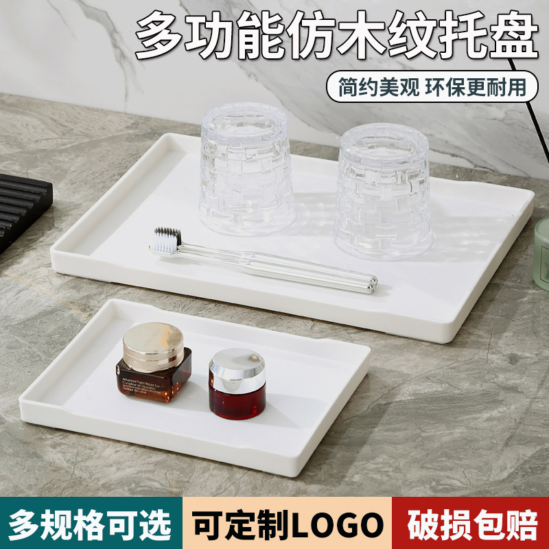 酒店托盘长方形塑料密胺民宿客房茶盘水杯洗漱用品收纳盘宾馆商用