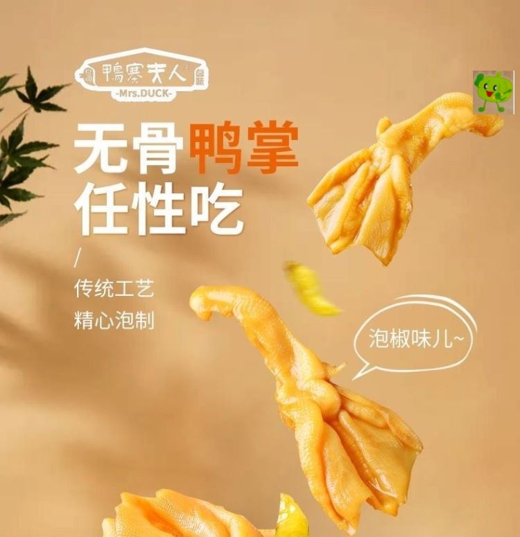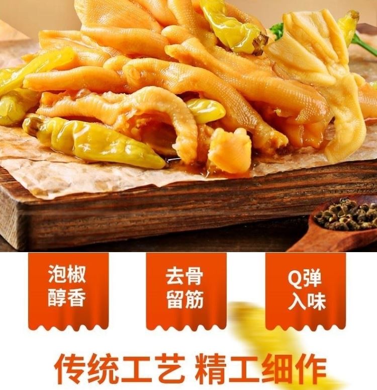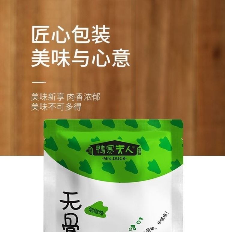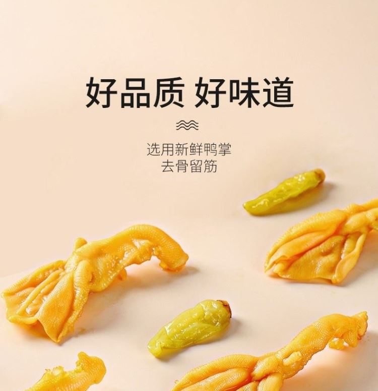村の夫人の骨のないアヒルの掌のアヒルの寨の夫人を抑えて骨に行ってサクサクしてピーマンのアヒルの掌を浸してすぐにアヒルの爪のレジャーの間食を食べます。