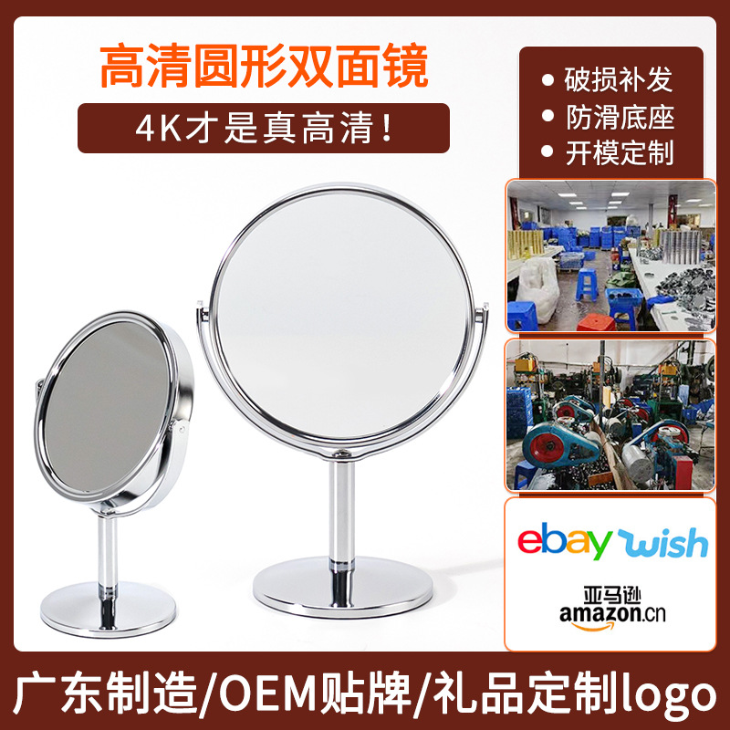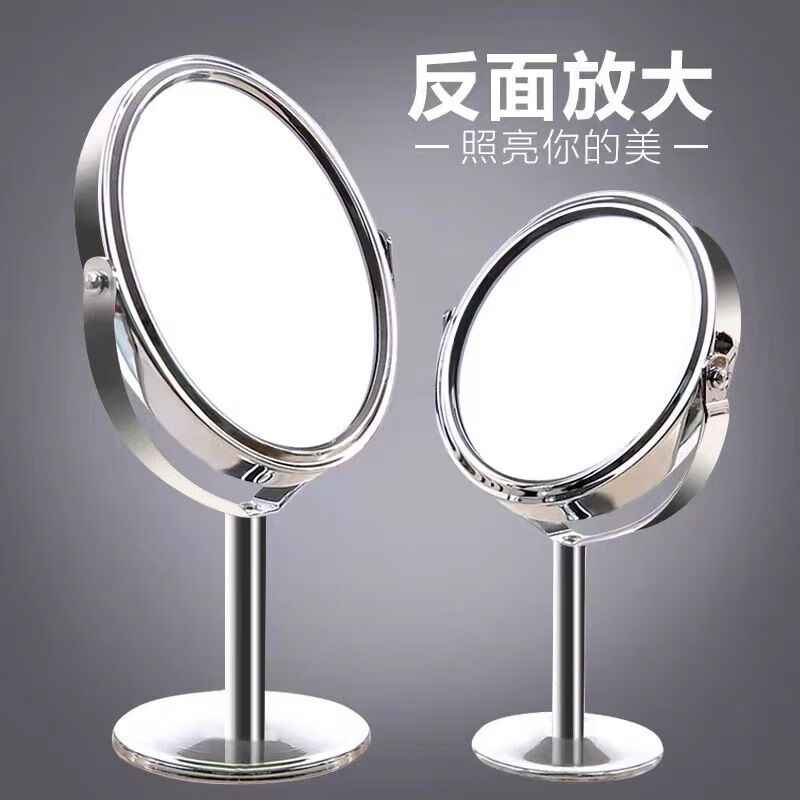 金属不锈钢双面台式桌面化妆镜办公室超高清放大立式梳妆镜化妆镜