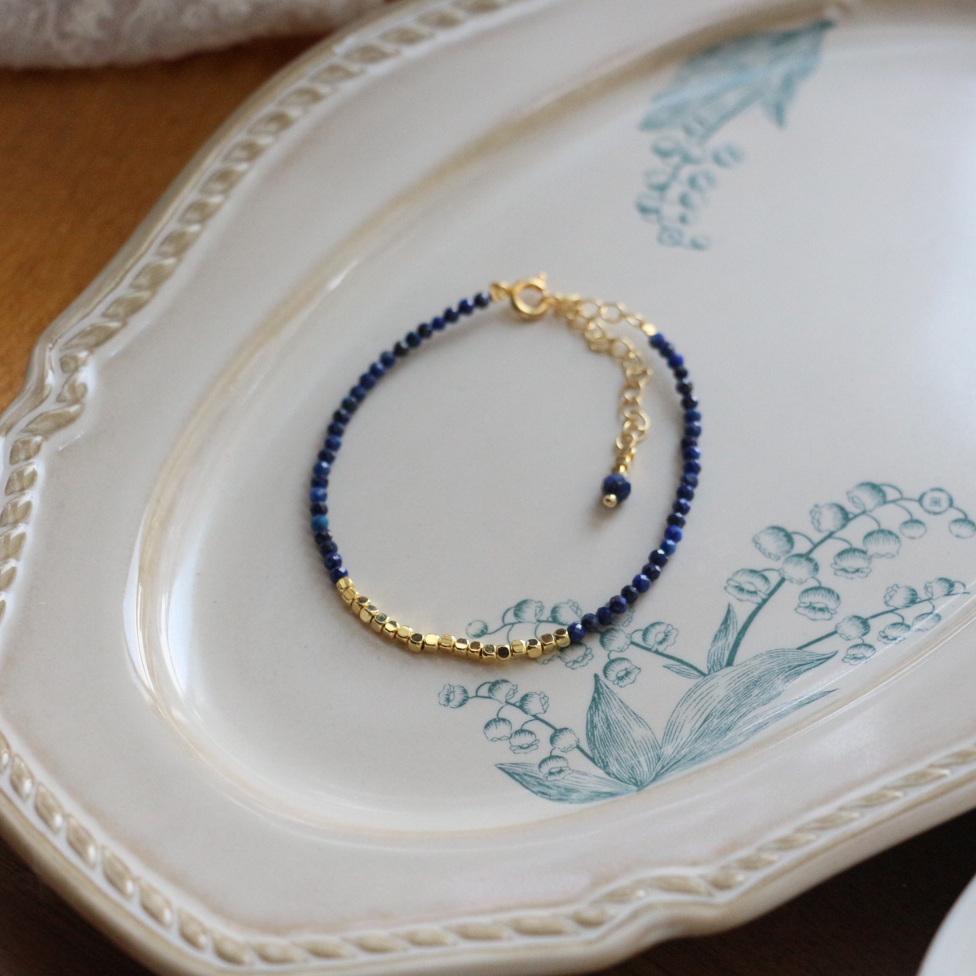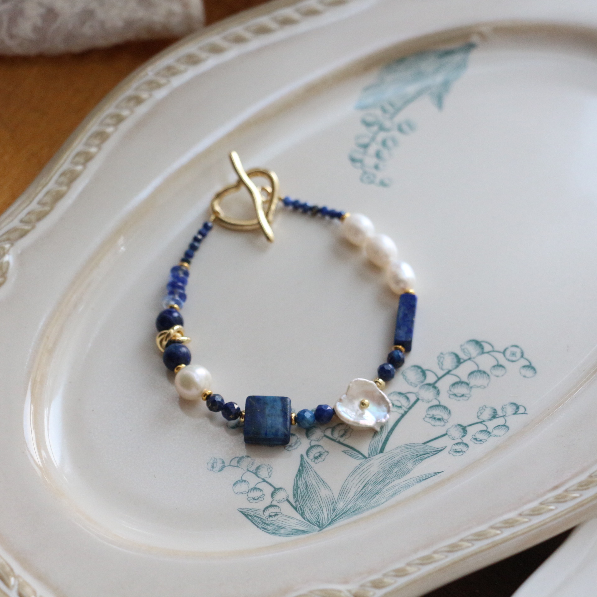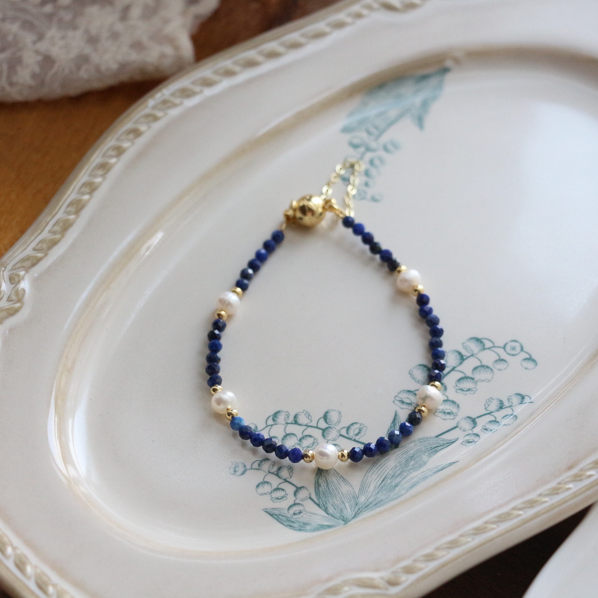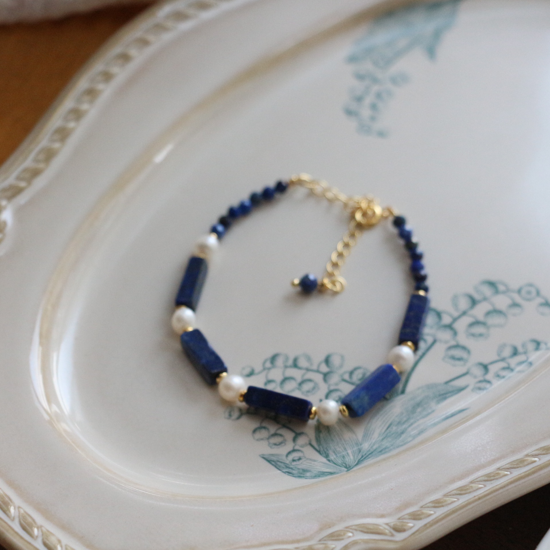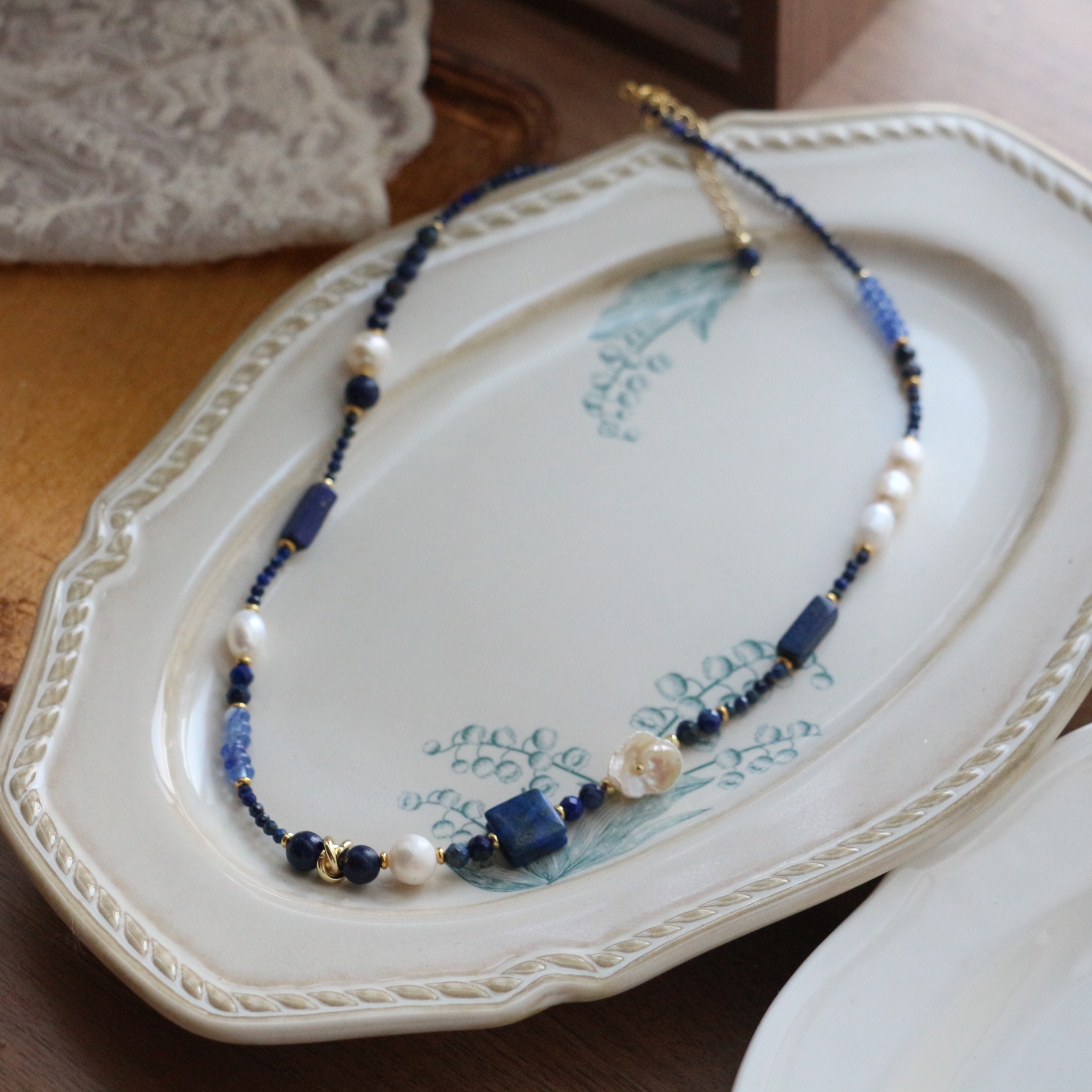 新中国式青金石手作りビーズリングデザイン小衆レトロ真珠ブレスレットネックレス鎖骨鎖指戒