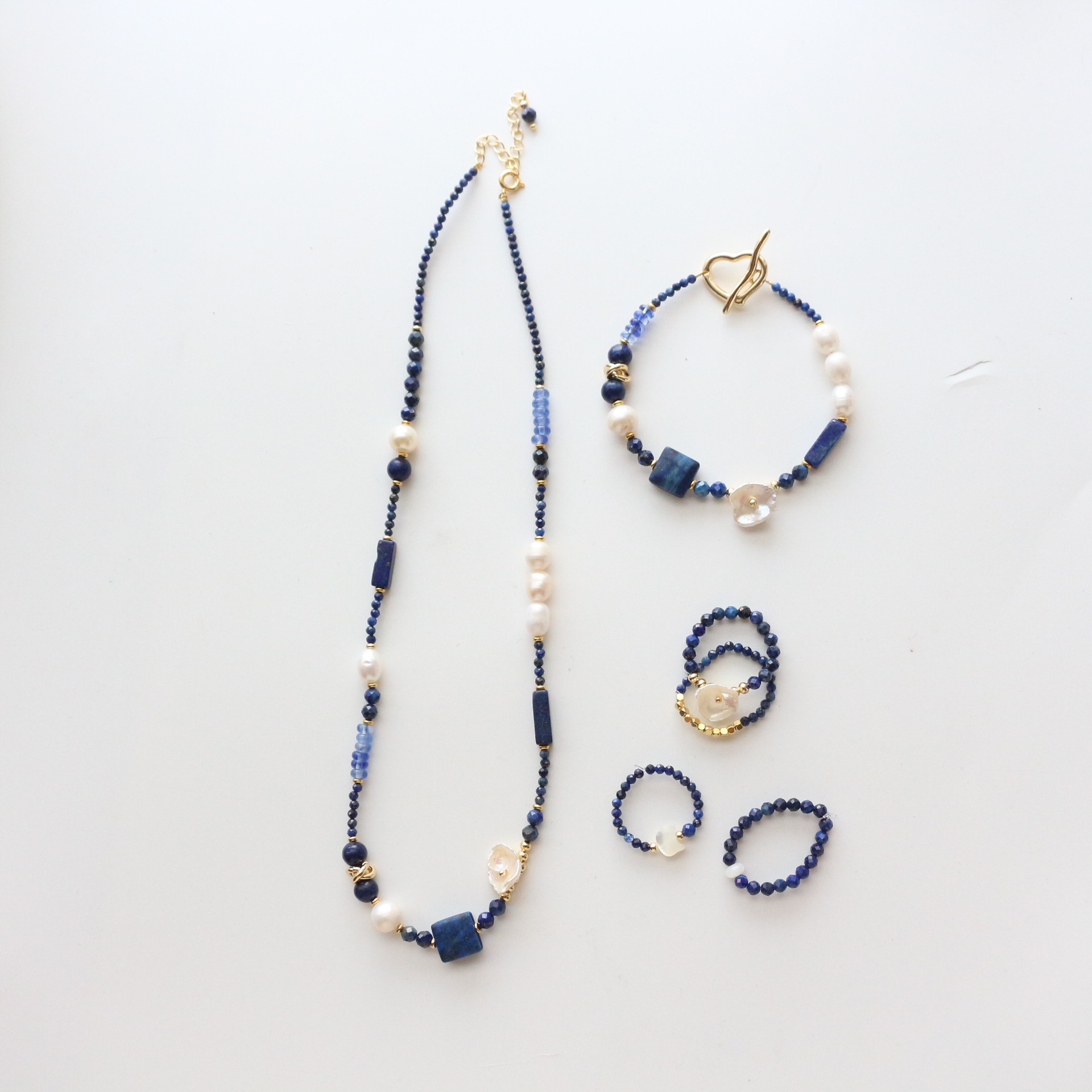 手作りアクセサリー国風青金石天然石ビーズネックレス淡水真珠鎖鎖ブレスレット指輪合集