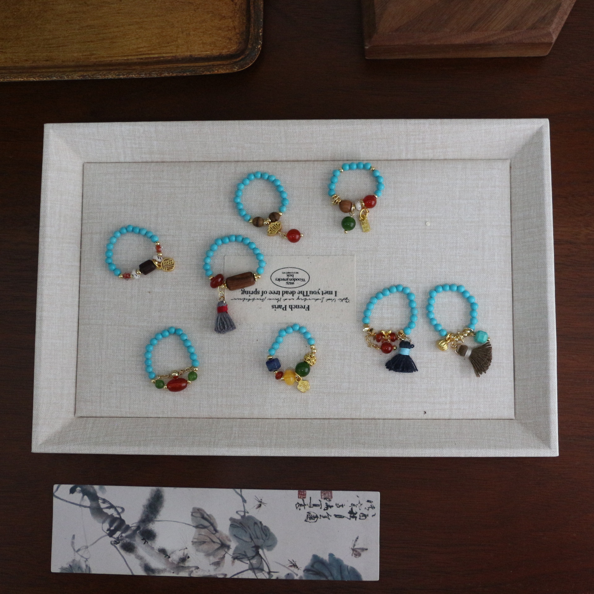 民族風小衆天然石指環食指戒新商品アクセサリー新中国風手作りビーズ弾力指輪