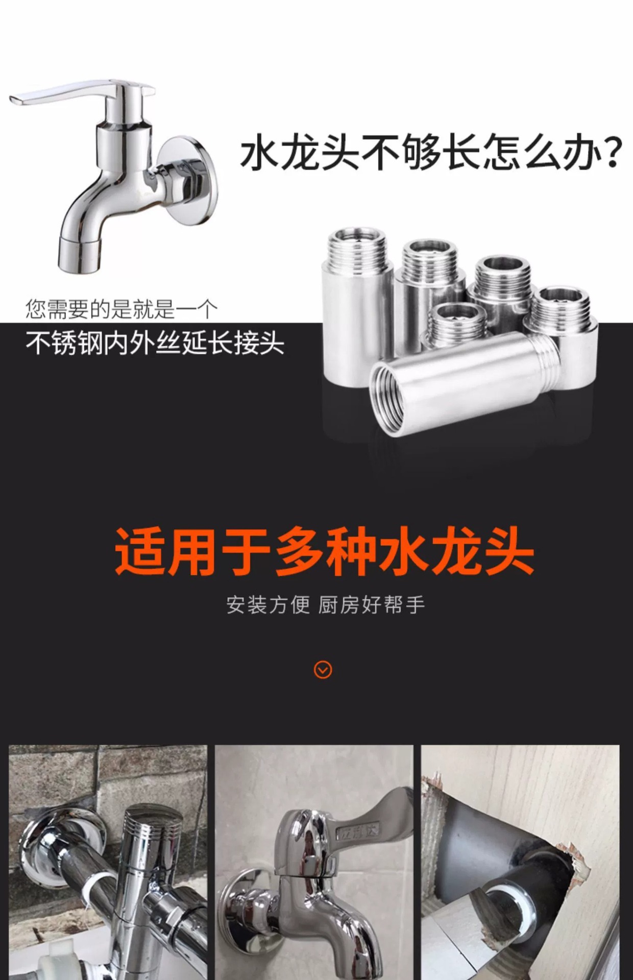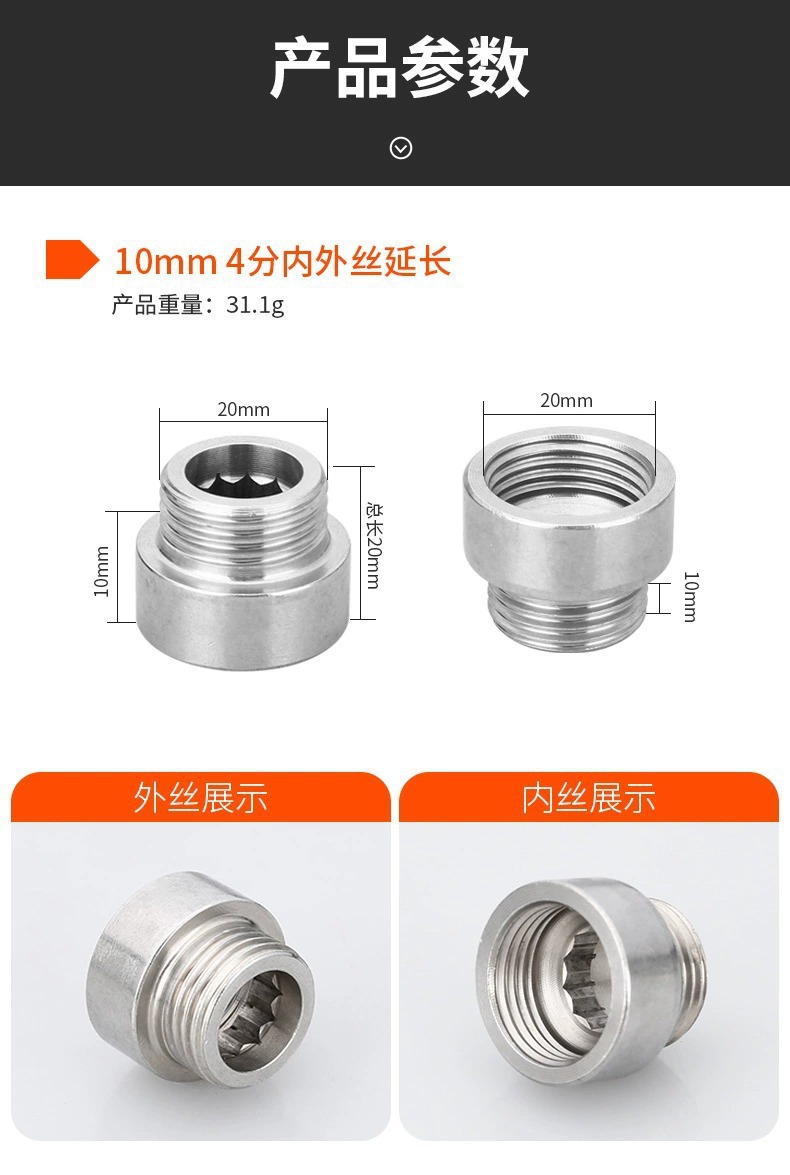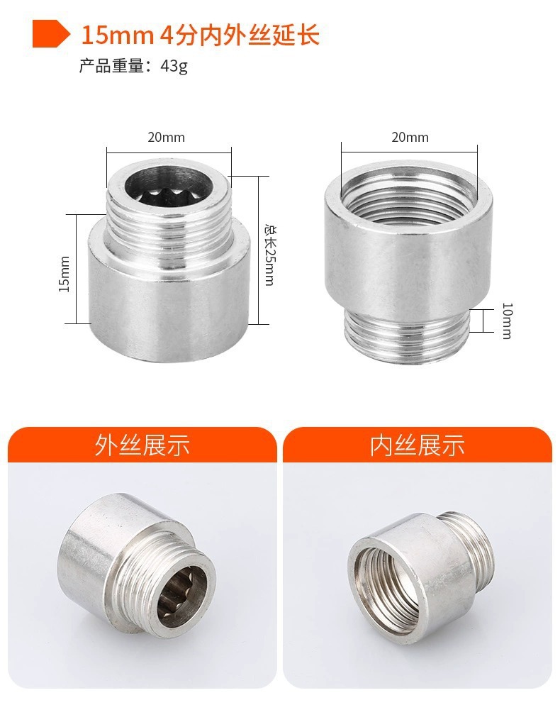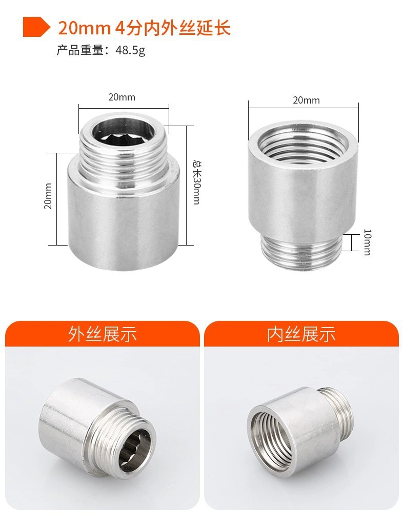 304ステンレス内外線4分延長継手延長直接蛇口延長管厚い水道部品