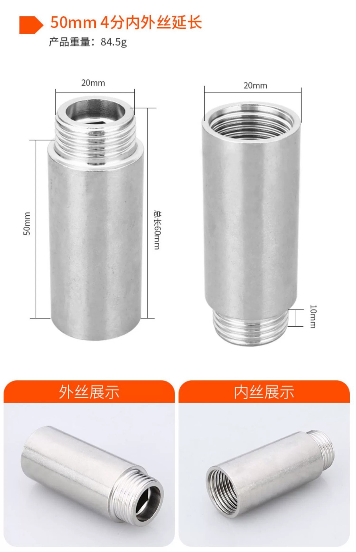 ステンレス4分内外糸継手延長管双頭糸304水管外糸管四分延長管部品