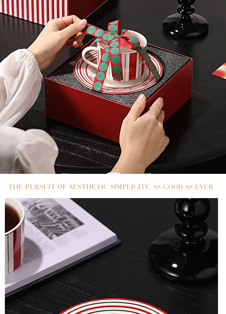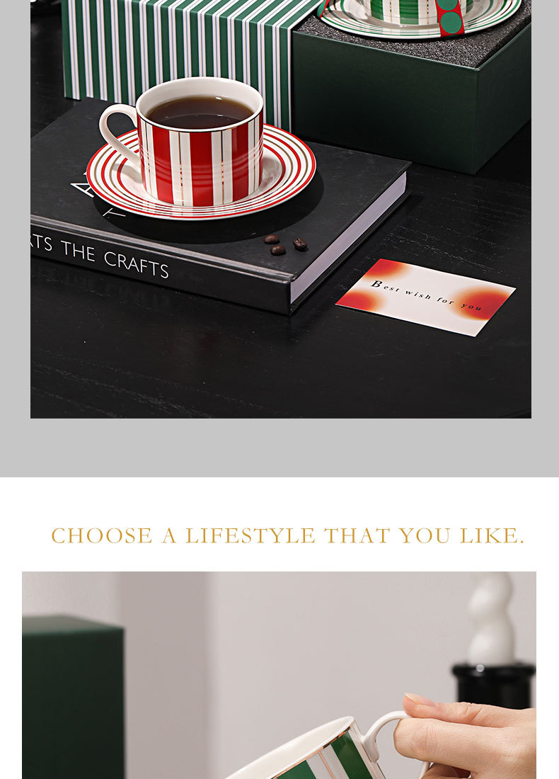 軽くて豪華な陶磁器の杯の北欧のストライプの杯の皿の贈り物のセットの茶楼の喫茶店のお菓子の杯の牛乳は事務の杯を飲みます