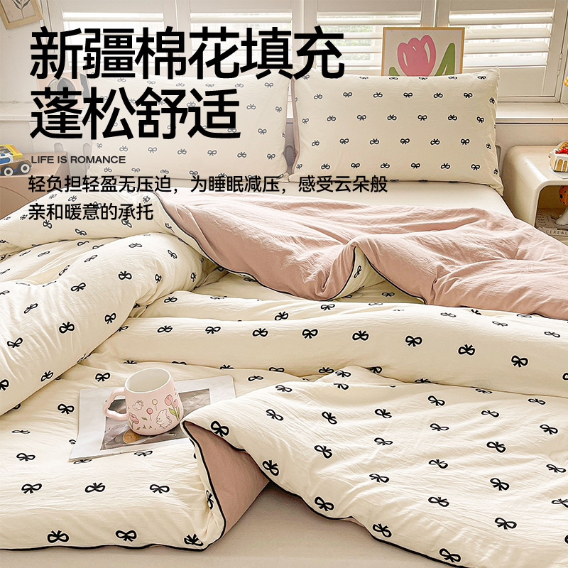 博主風全綿四点セットの色織水洗い純綿三点セットの学生寮シーツ