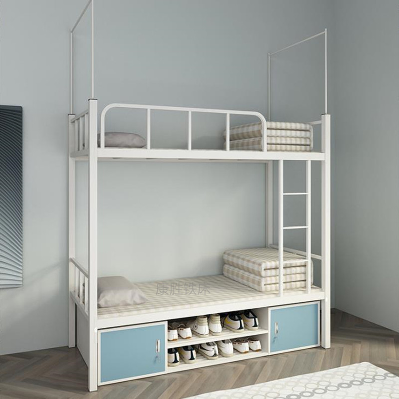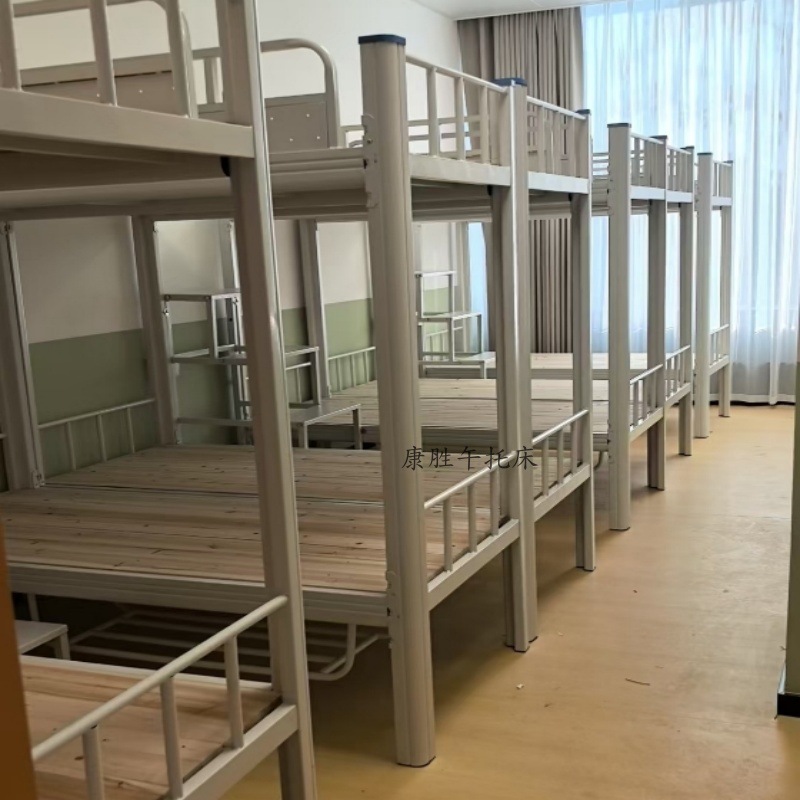 上下に鉄製のベッドを敷いて、寮の上下のベッドをカスタマイズします。
