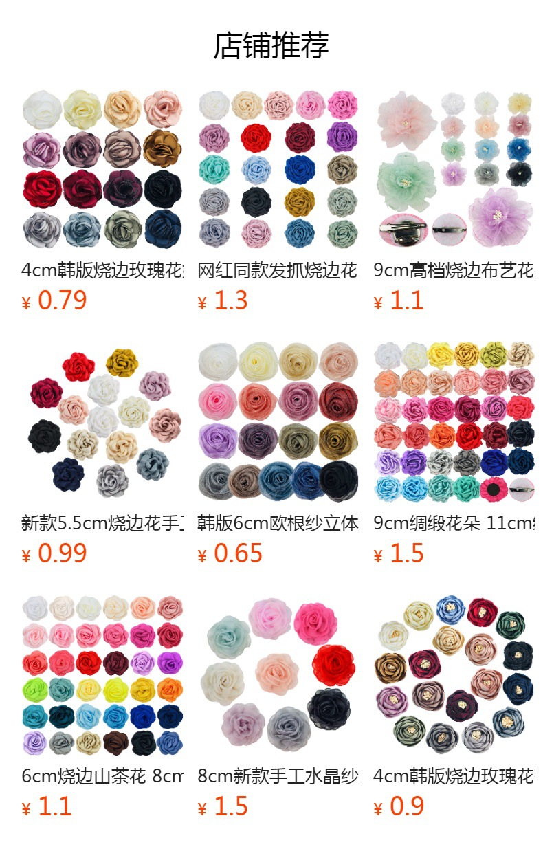 顾客下单前必读:此价格为单个头花的价格(可进一步加工为胸花、发夹,发带,宠物项圈皮筋等等),散装。