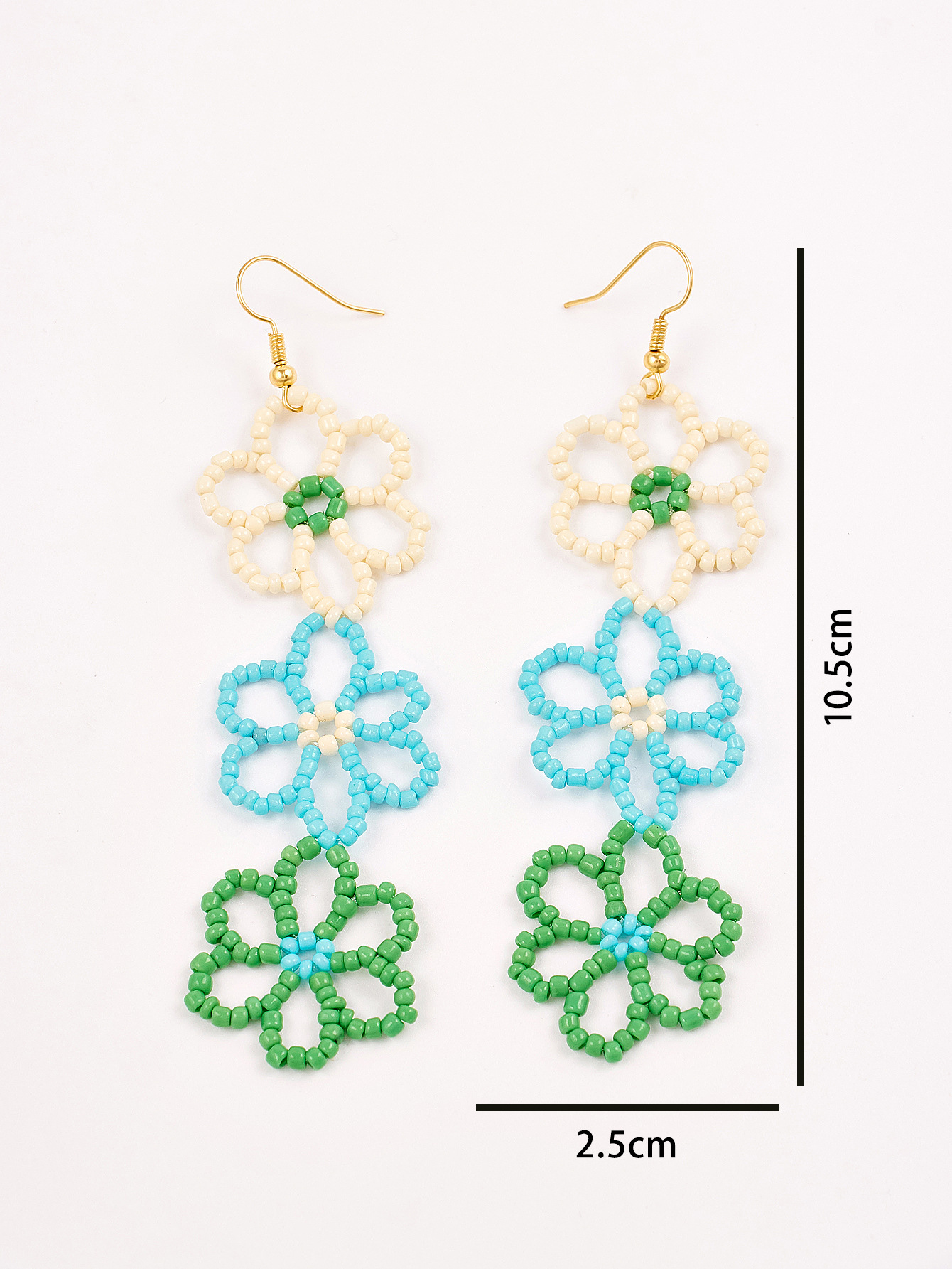 1 ペアの青と緑の色のフラワー ライス ビーズ イヤリング、小さく新鮮でエレガント、ファッショナブル、絶妙で優しく、ファッショナブルで多用途