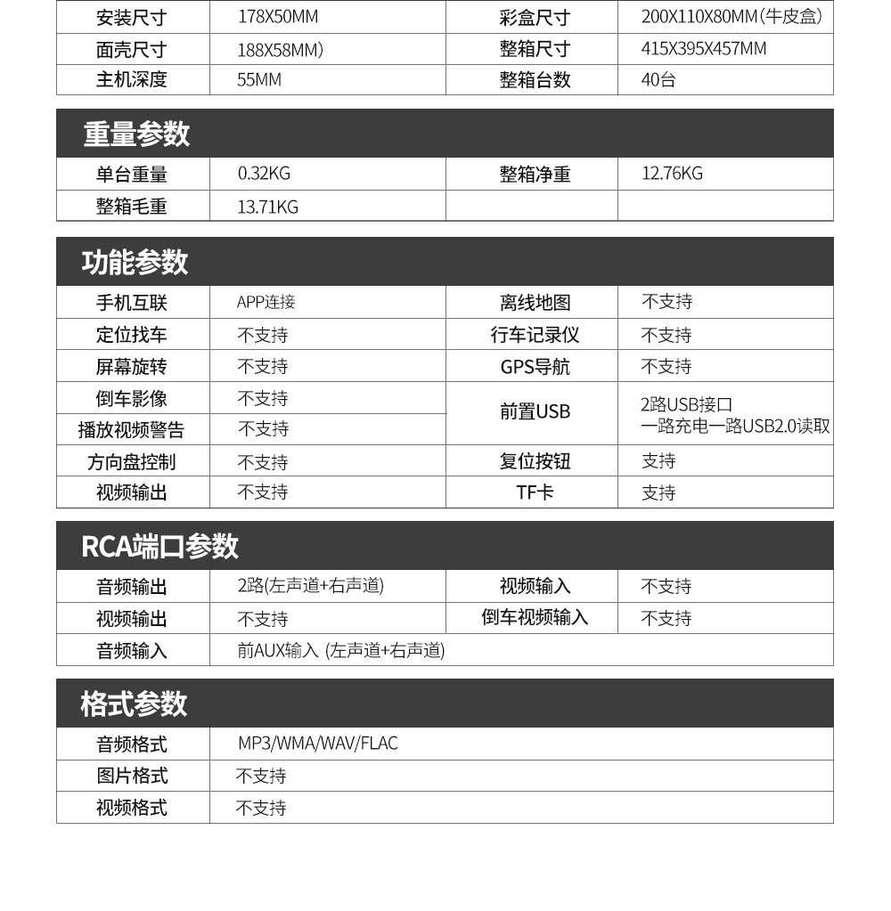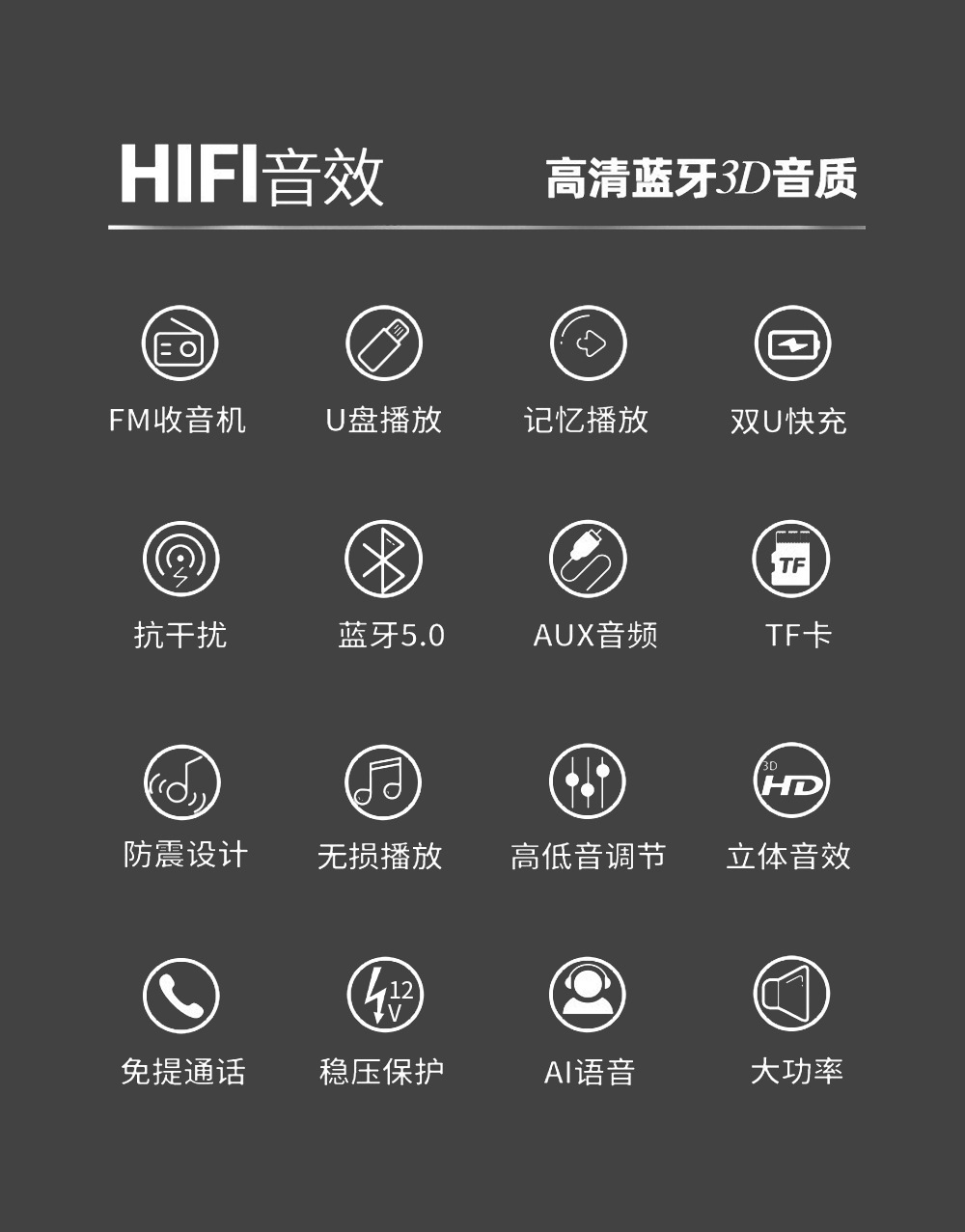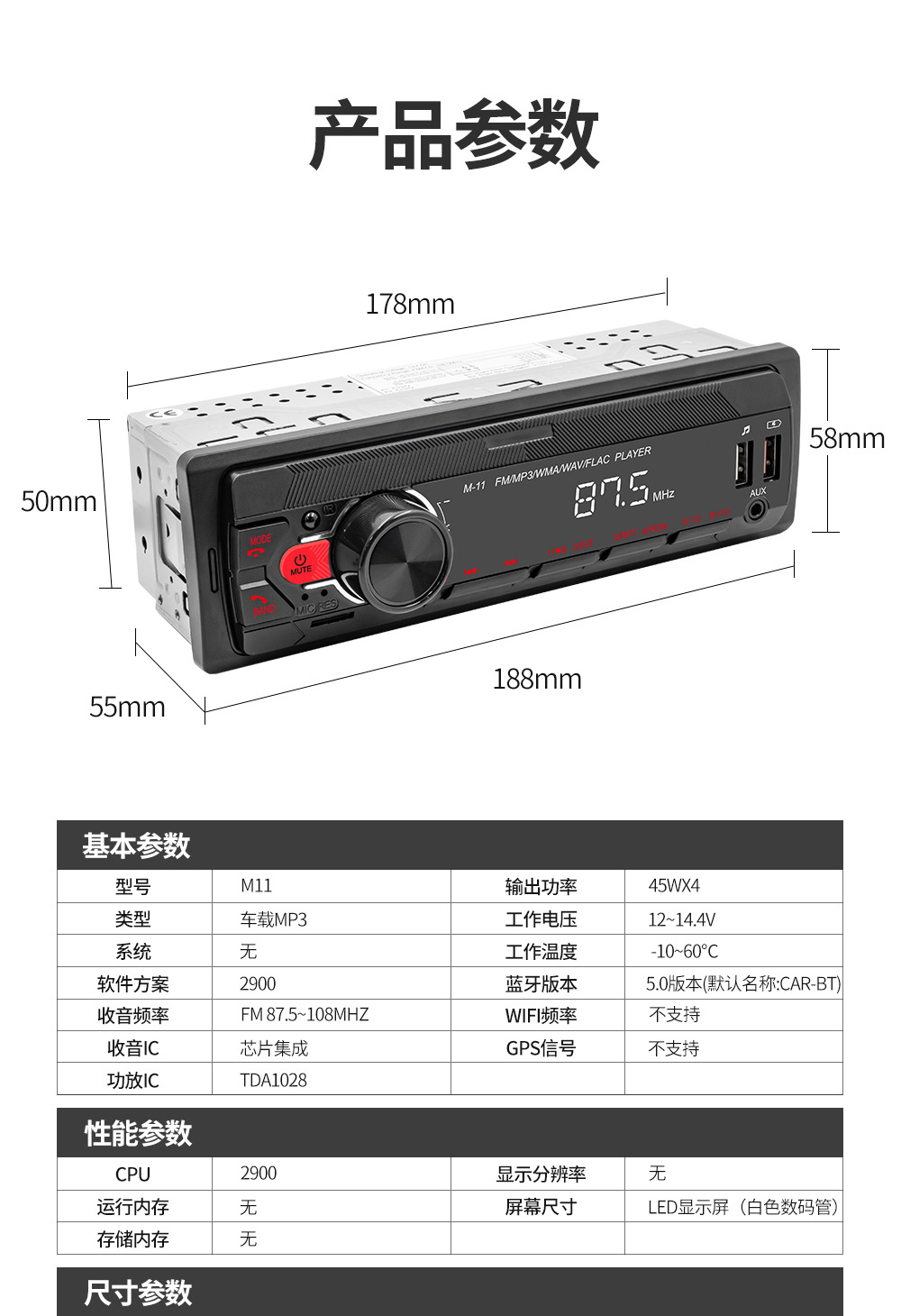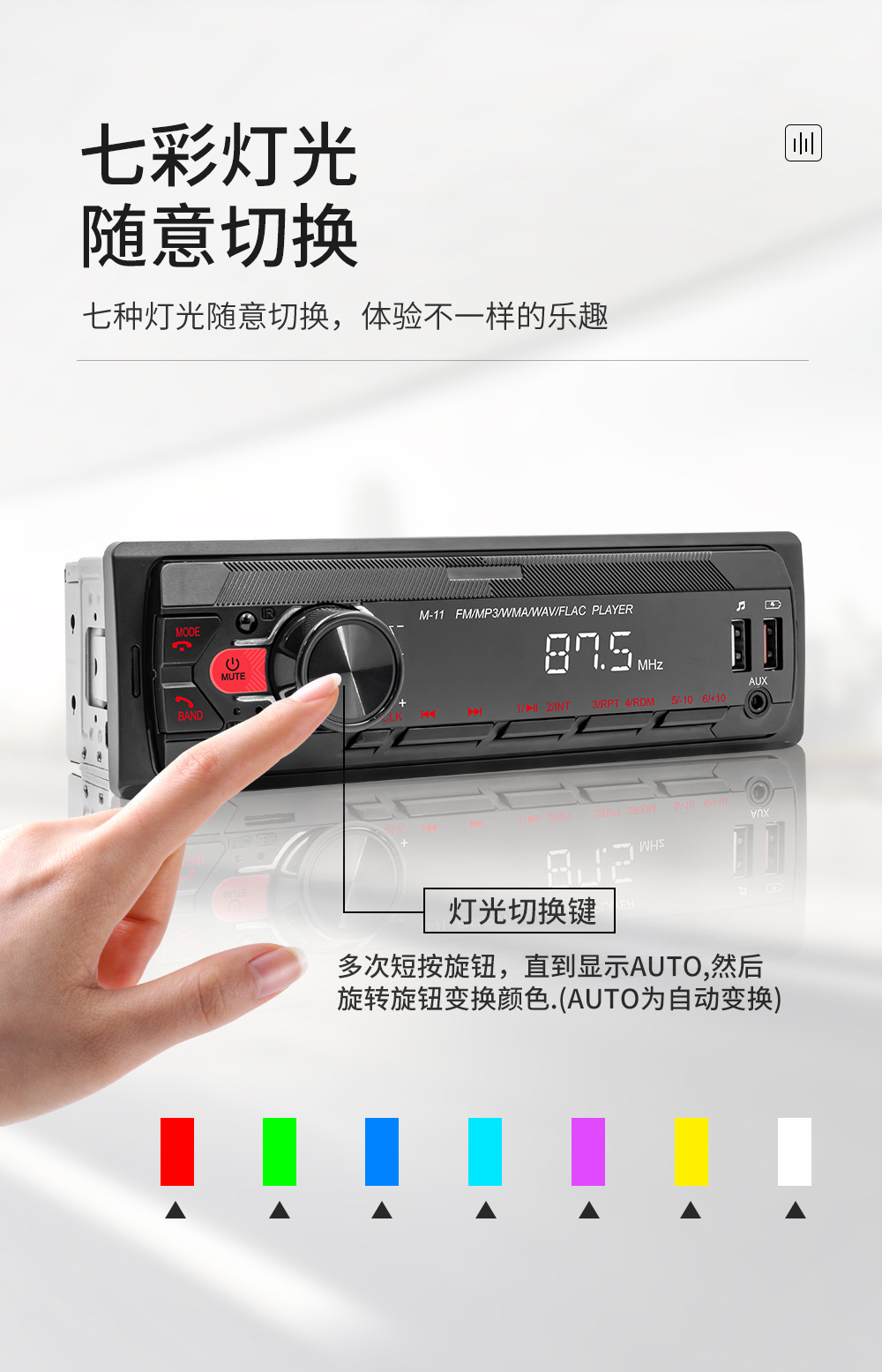 12V单锭车载MP3短款七彩灯光蓝牙手机智能APP控制播放器FM收音机