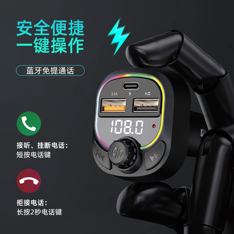 品米車載bluetooth MP3 PD QC3.0急速充電車載プレーヤー自動車FM送信機雰囲気ランプ