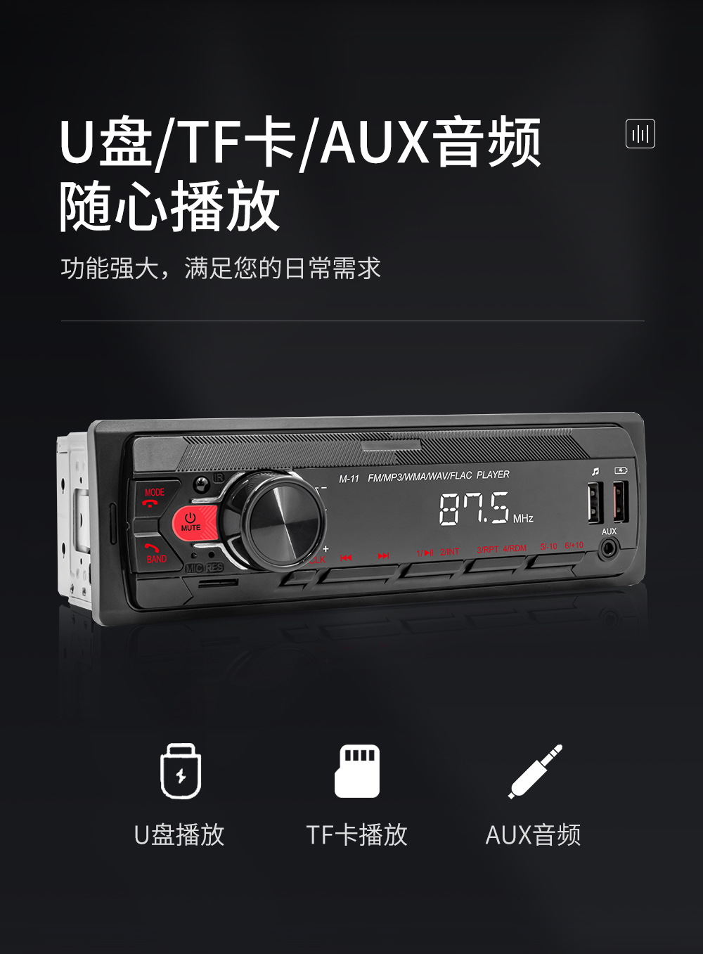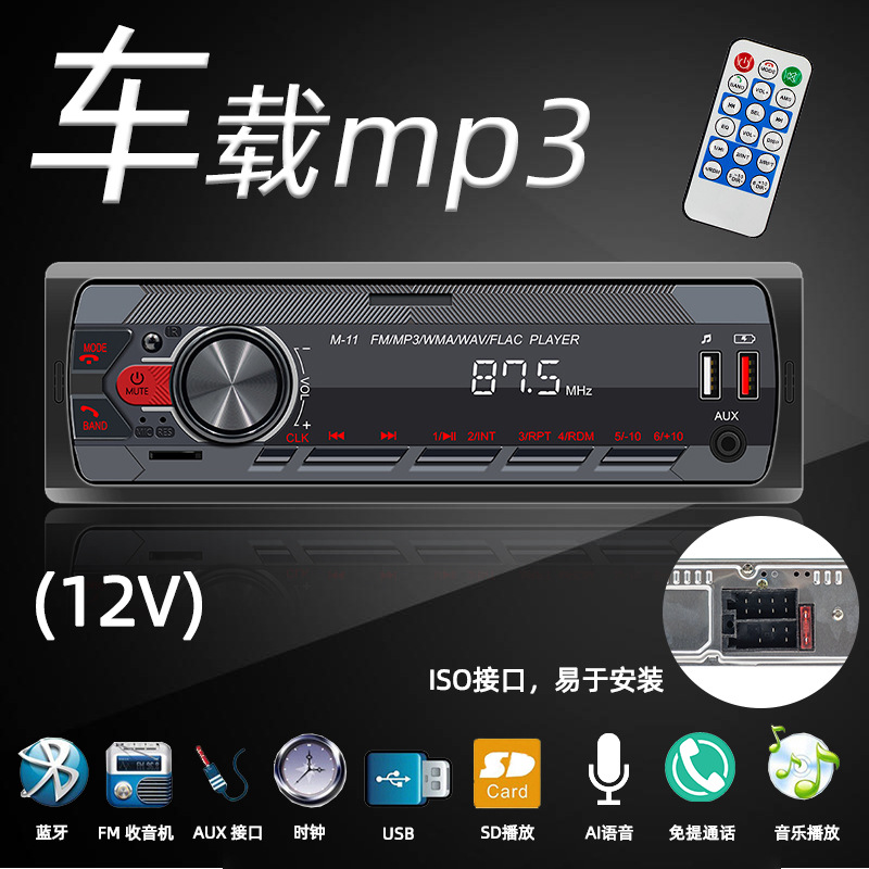クロスボーダーbluetoothラジオ車載mp3リモコン携帯電話充電カードラジオ機能再生機現物ショートタイプ