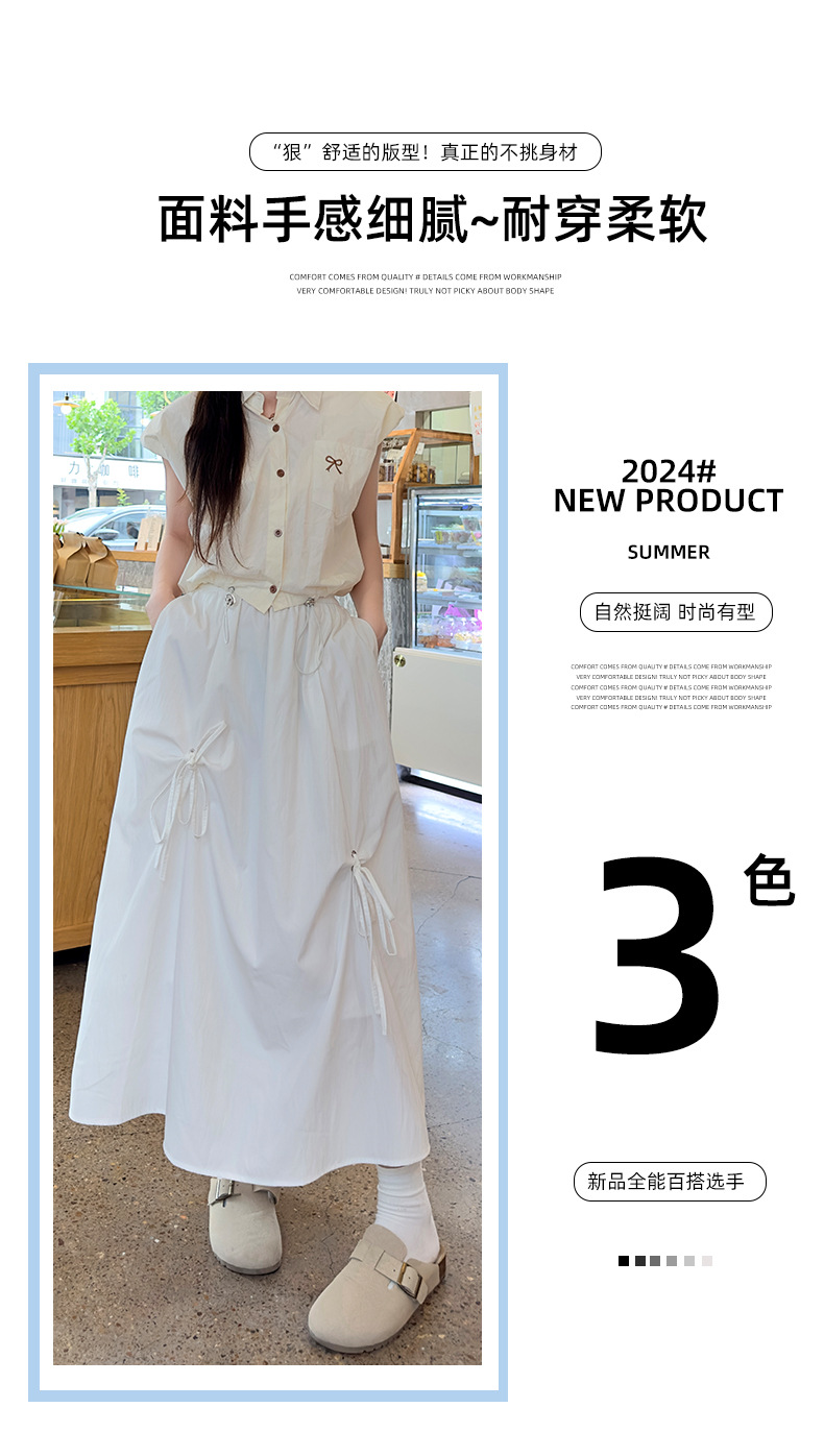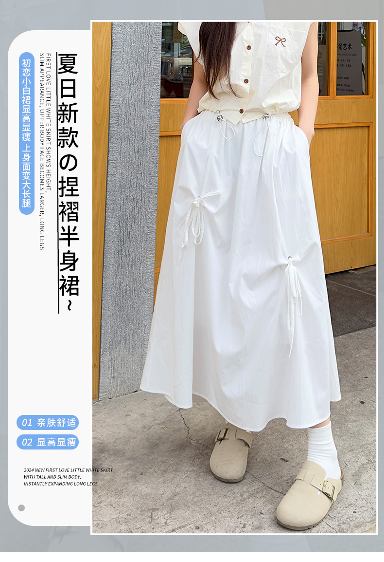 【ポケット付き】白い半身スカート レディース 夏 2026年新作 ゆったりとしたスタイル 大きな裾のミディ丈スカート ふんわりケーキスカート