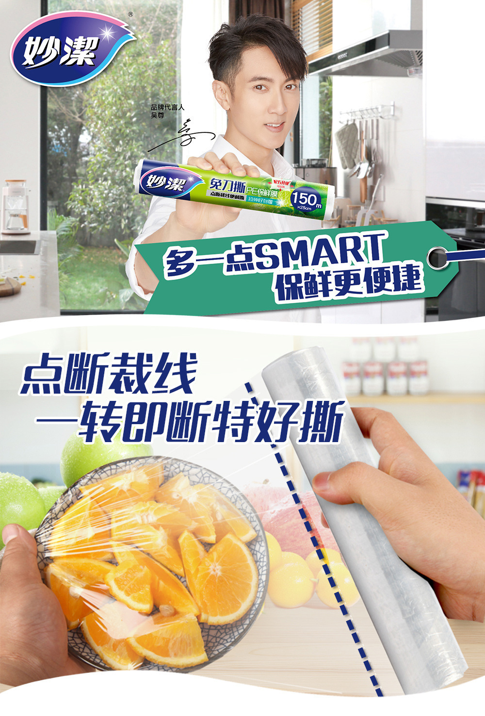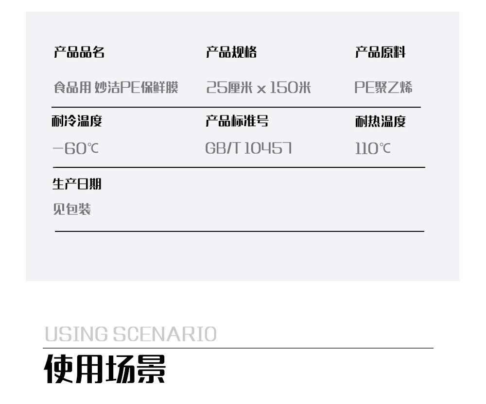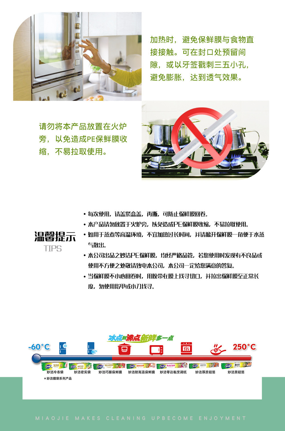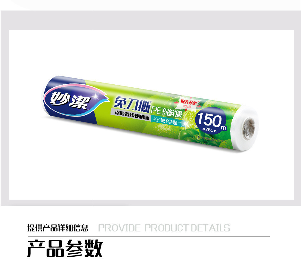 妙潔ラップフィルム食品級家庭用PE点断式使い捨て高温冷蔵庫冷蔵台所用品卸売り