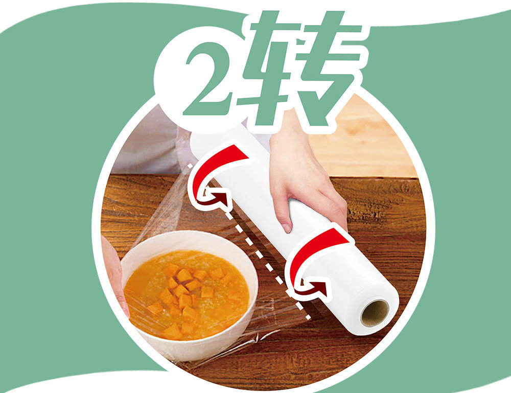 妙潔無刀裂大巻食品用点断式ラップ家庭用キッチンは高温で25*150メートル冷蔵できる