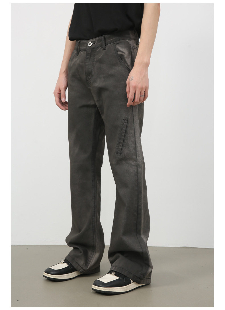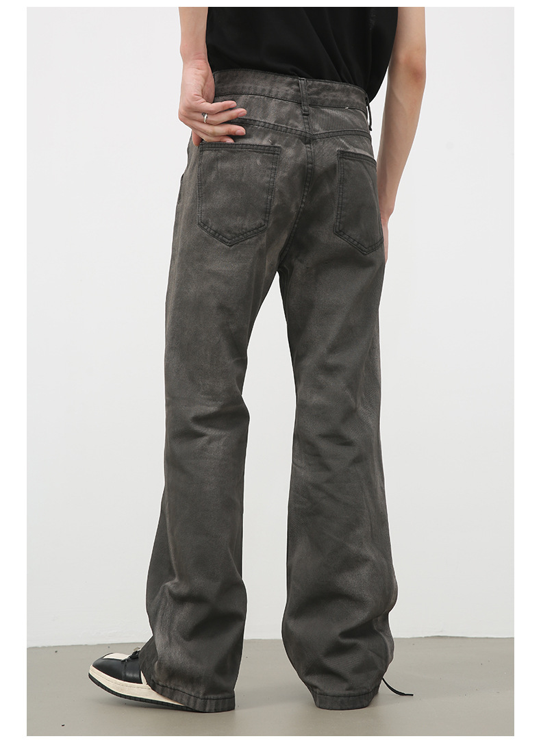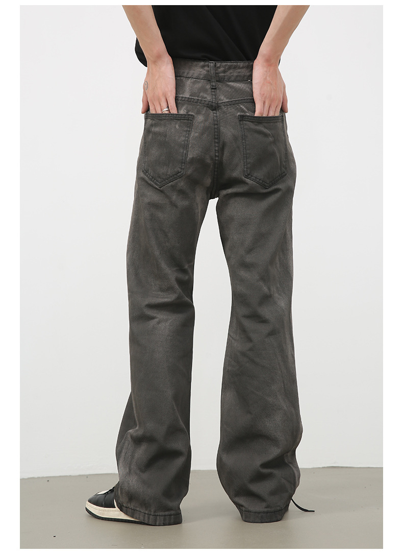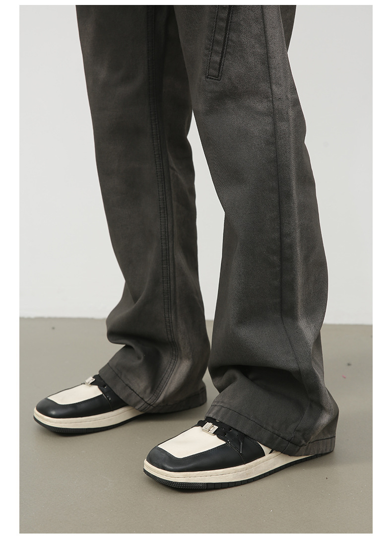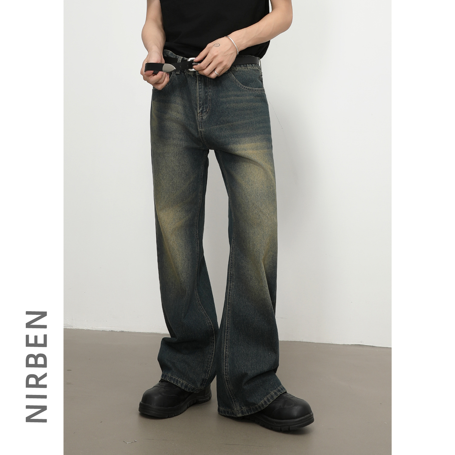 nirben牛仔|港风时尚复古做旧微喇叭牛仔裤男宽松显瘦百搭长裤