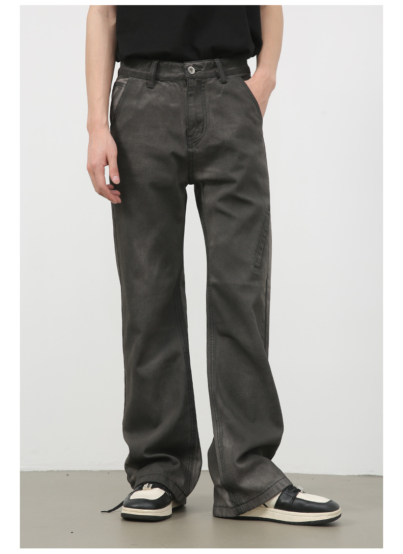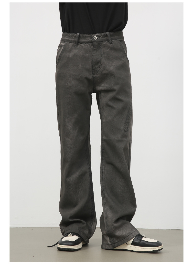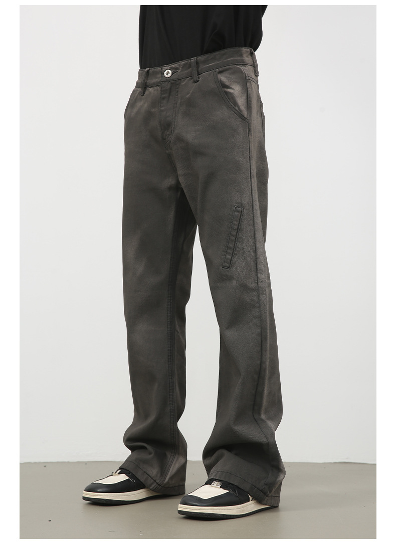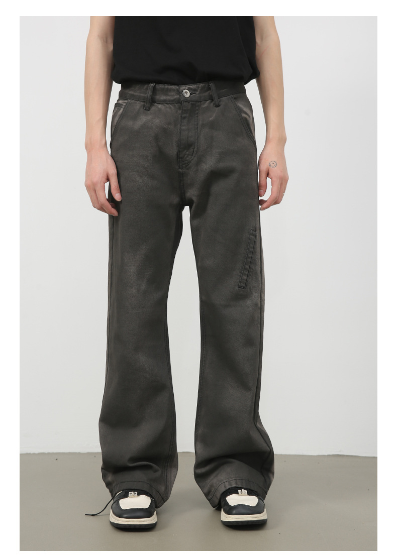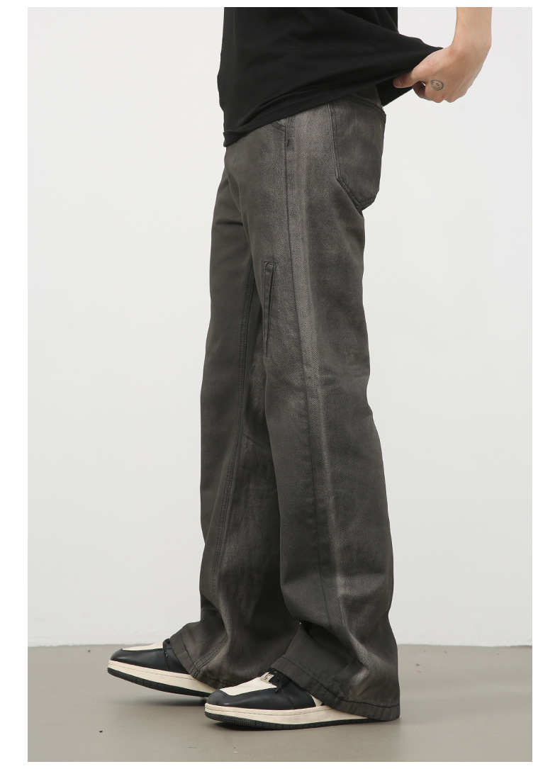 nirben牛仔|港风时尚复古做旧微喇叭牛仔裤男宽松显瘦百搭长裤