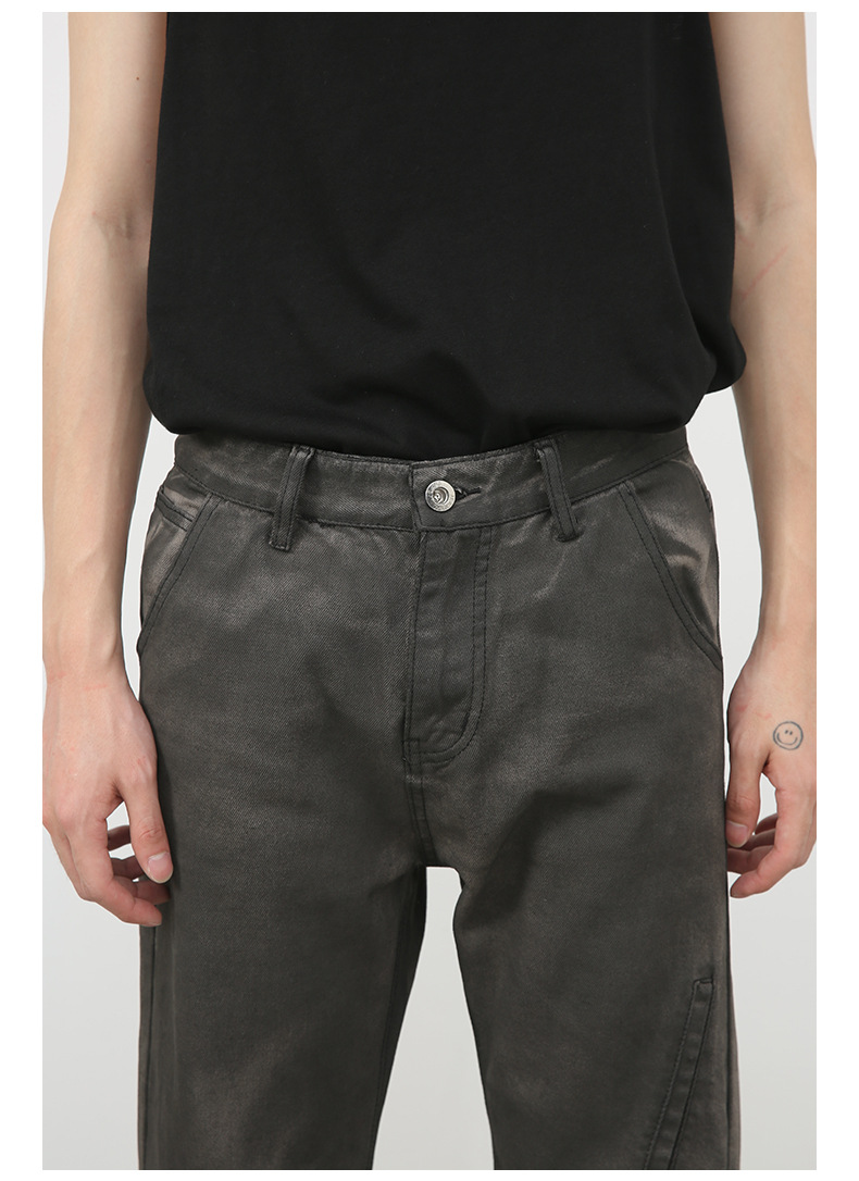 Nirbenデニム | アメリカのレトロな水洗いマイクロラップジーンズ男性グレーのファッションブランドのゆるいストレートカジュアルパンツ