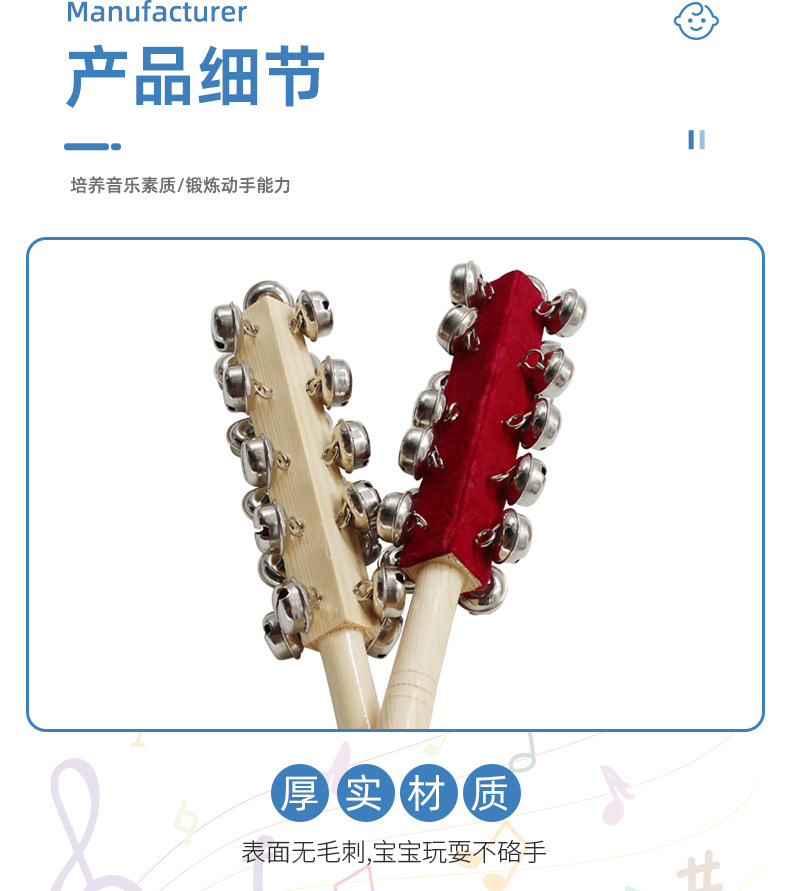子供の打楽器学生教育オルフパフォーマンスガラガラ 13 スティックベルカラースティックベル 21 スティックベルレッドベルベット