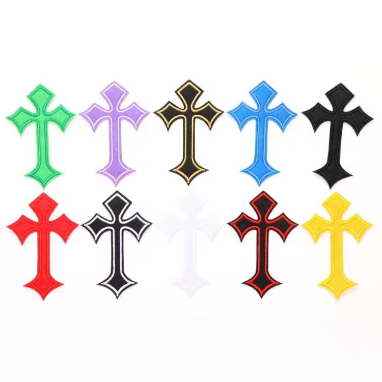 十字架刺繍布パッチ、コンピューター刺繍ロゴ、衣料品アクセサリー、服のパッチ、装飾パッチ、布パッチ