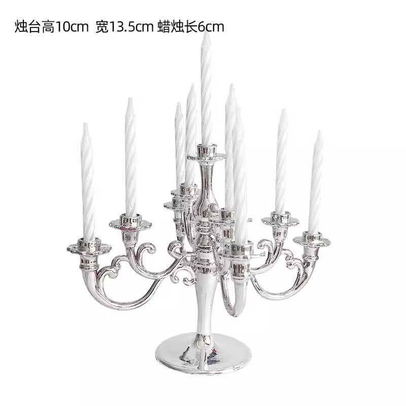 電着シルバーキャンドルホルダー+キャンドル,ホワイトパールのリボン
