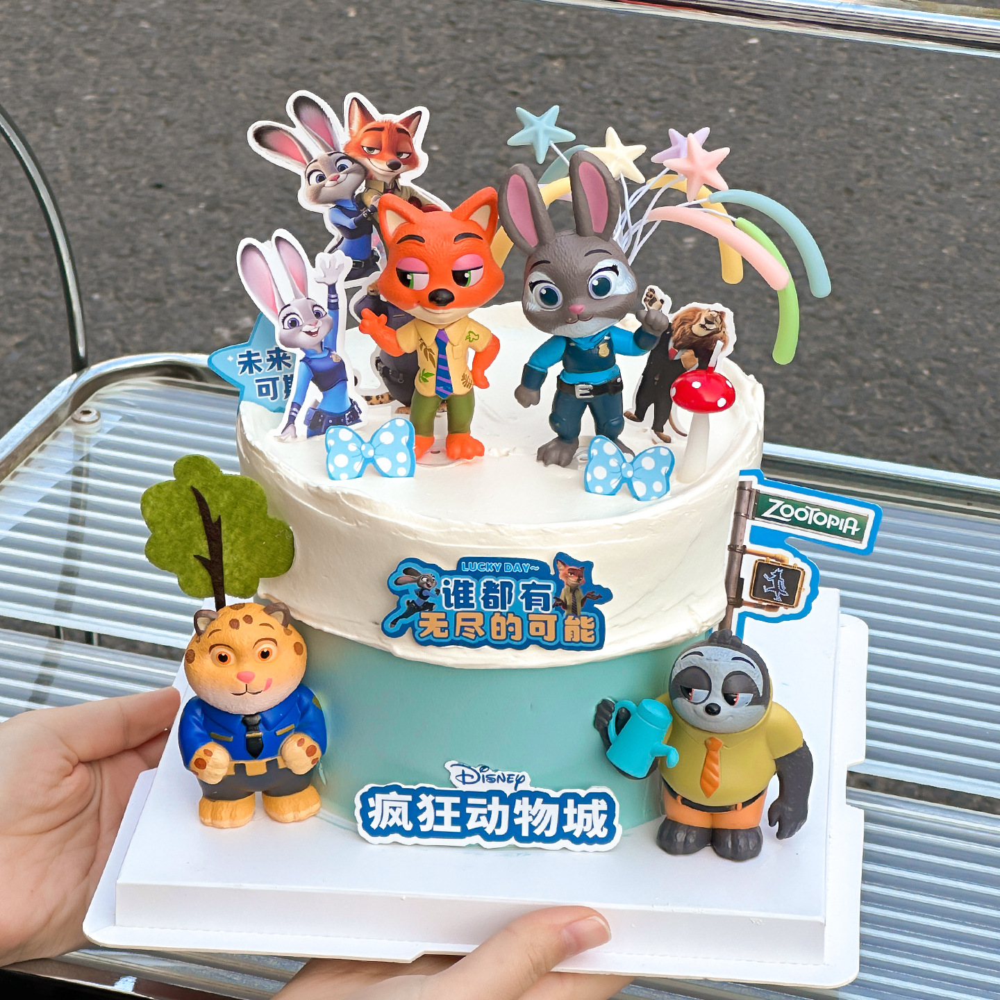 卡通疯狂动物城蛋糕装饰朱迪兔子尼克狐狸狮子摆件儿童生日装扮