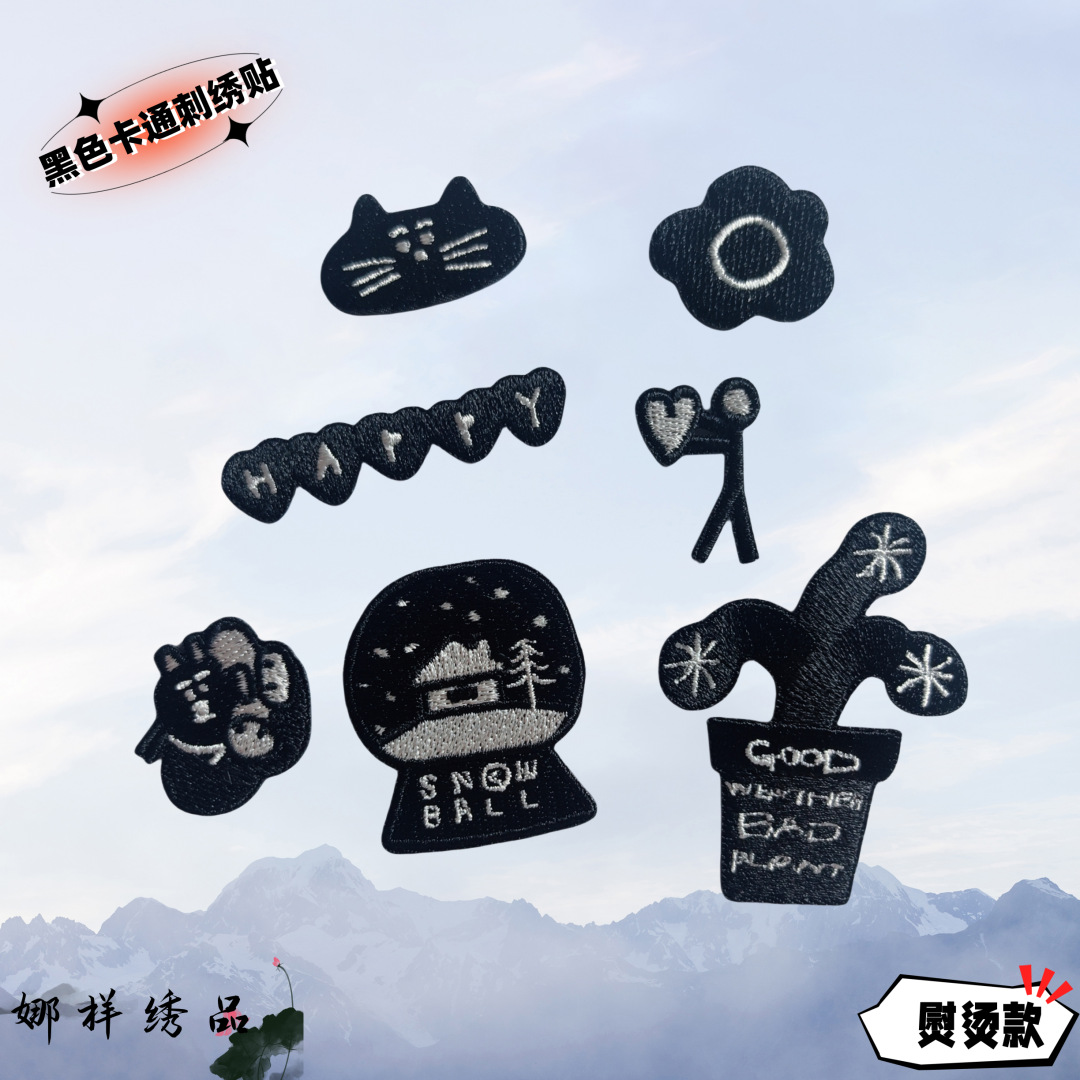 Nayang 新韓国語版黒漫画刺繍ステッカー半袖 DIY 布ステッカーバッグ装飾衣類アクセサリーアイロンステッカー