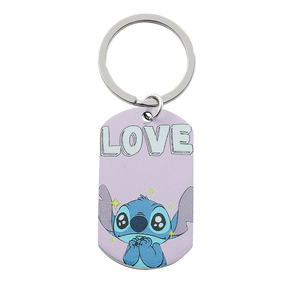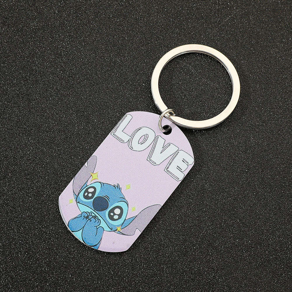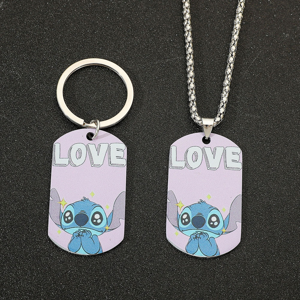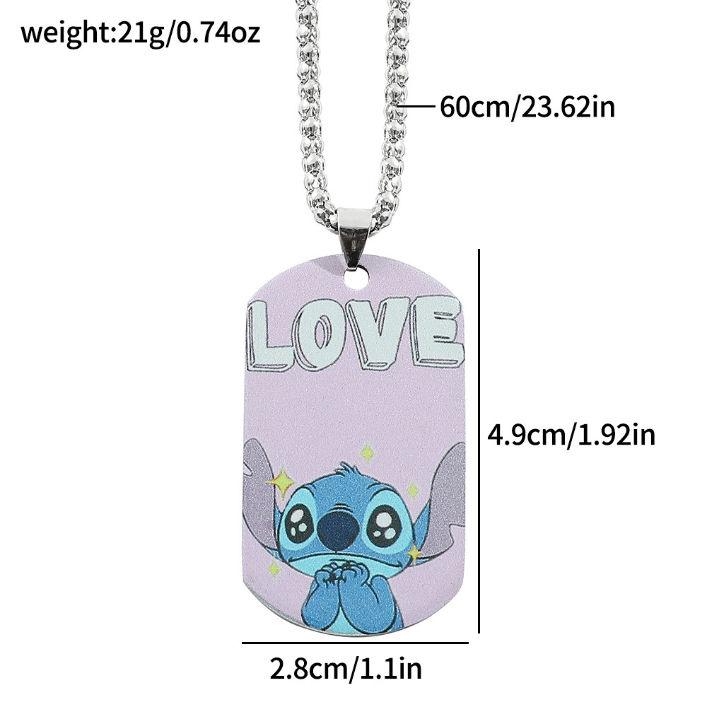 クロスボーダーの人気史迪仔アニメアニメステンレス両面印刷ペンダントネックレスのキーホルダーのアクセサリー卸売り