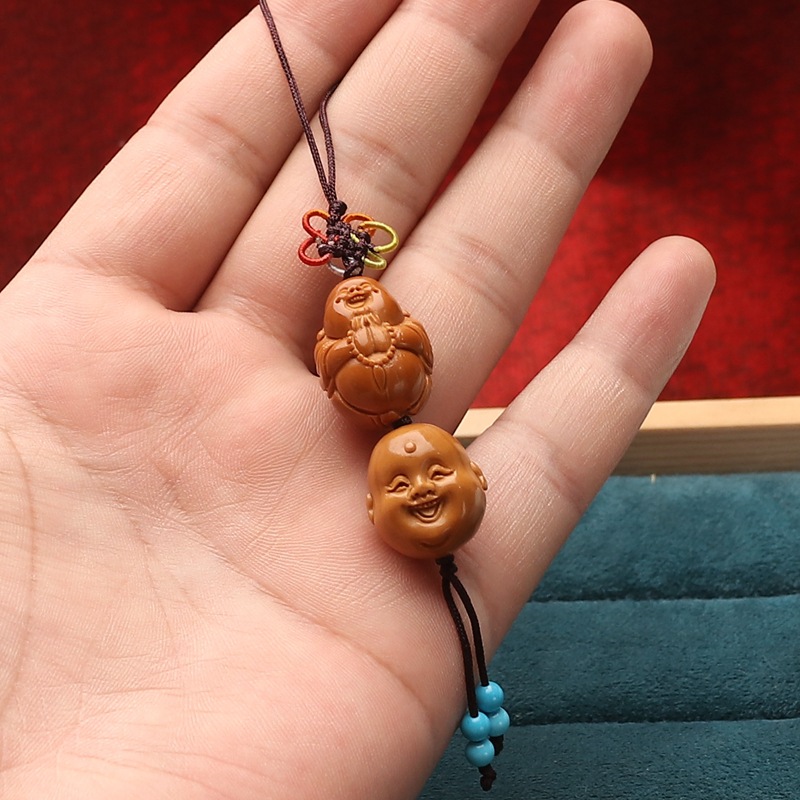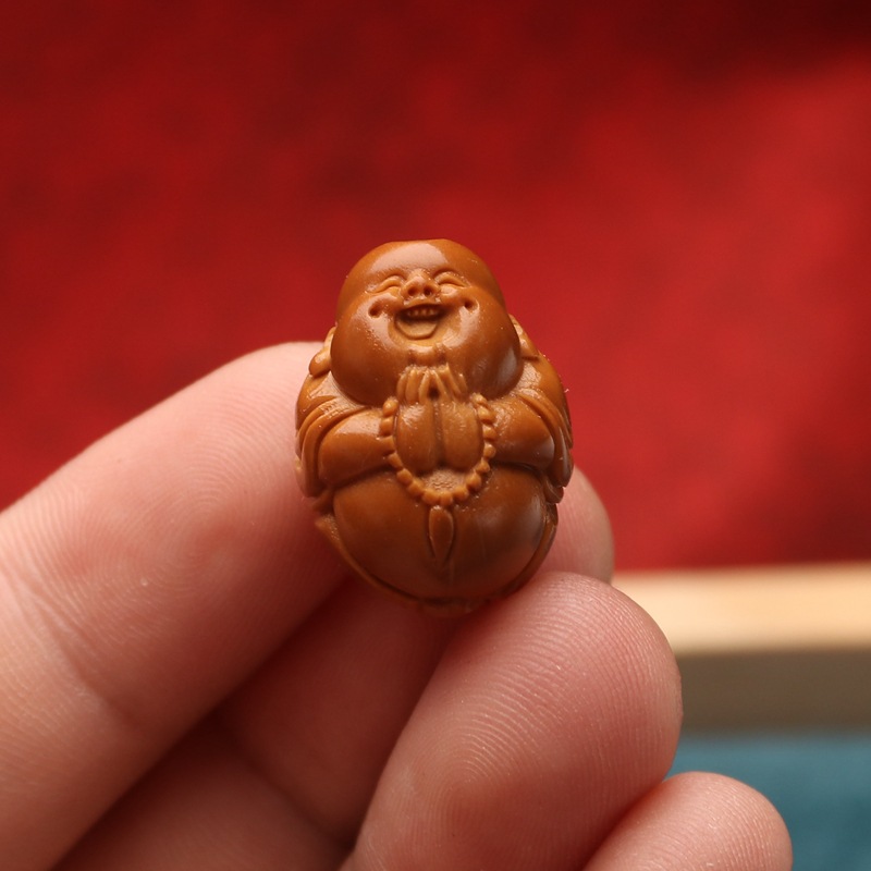 単一の種のオリーブの核の彫刻の百態の楽しい弥勒の頭の笑いの仏の単一の鍵のボタンの文は贈り物のトップの玉を遊んで男を飾ります。