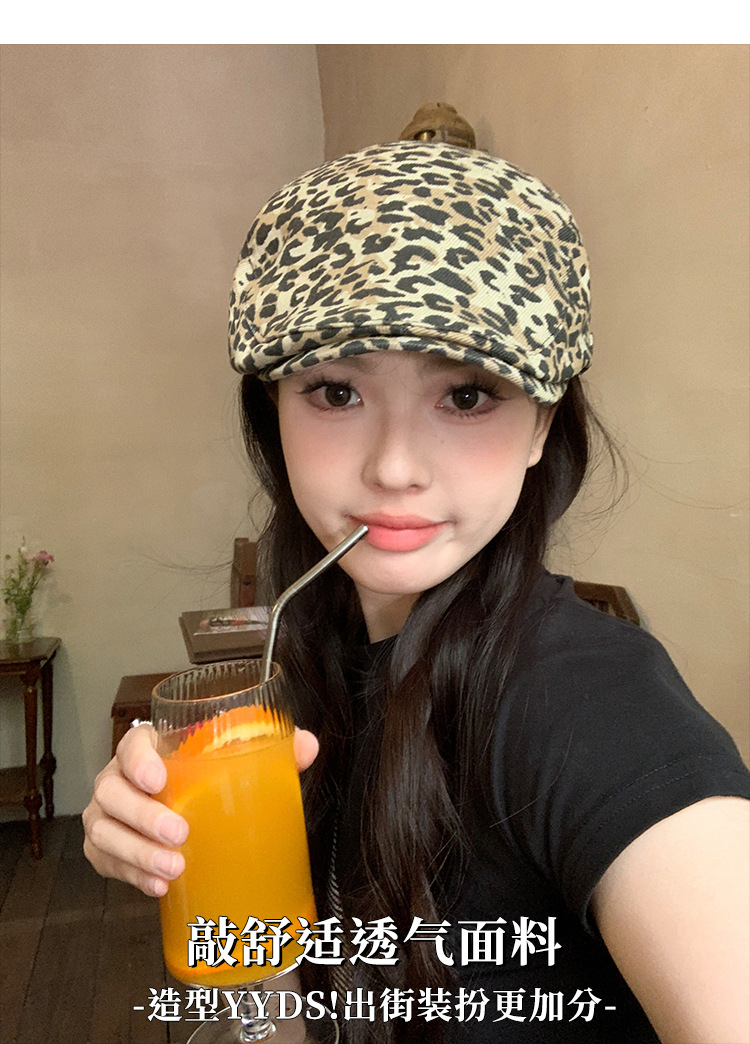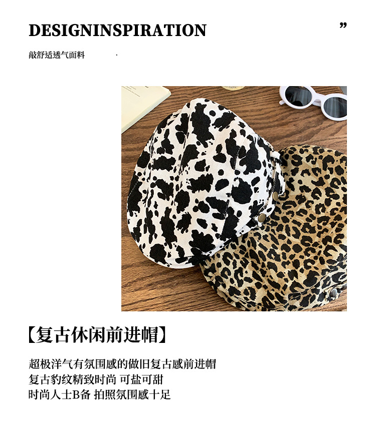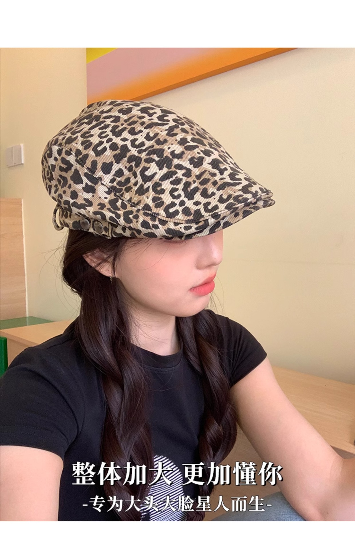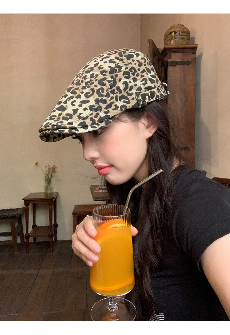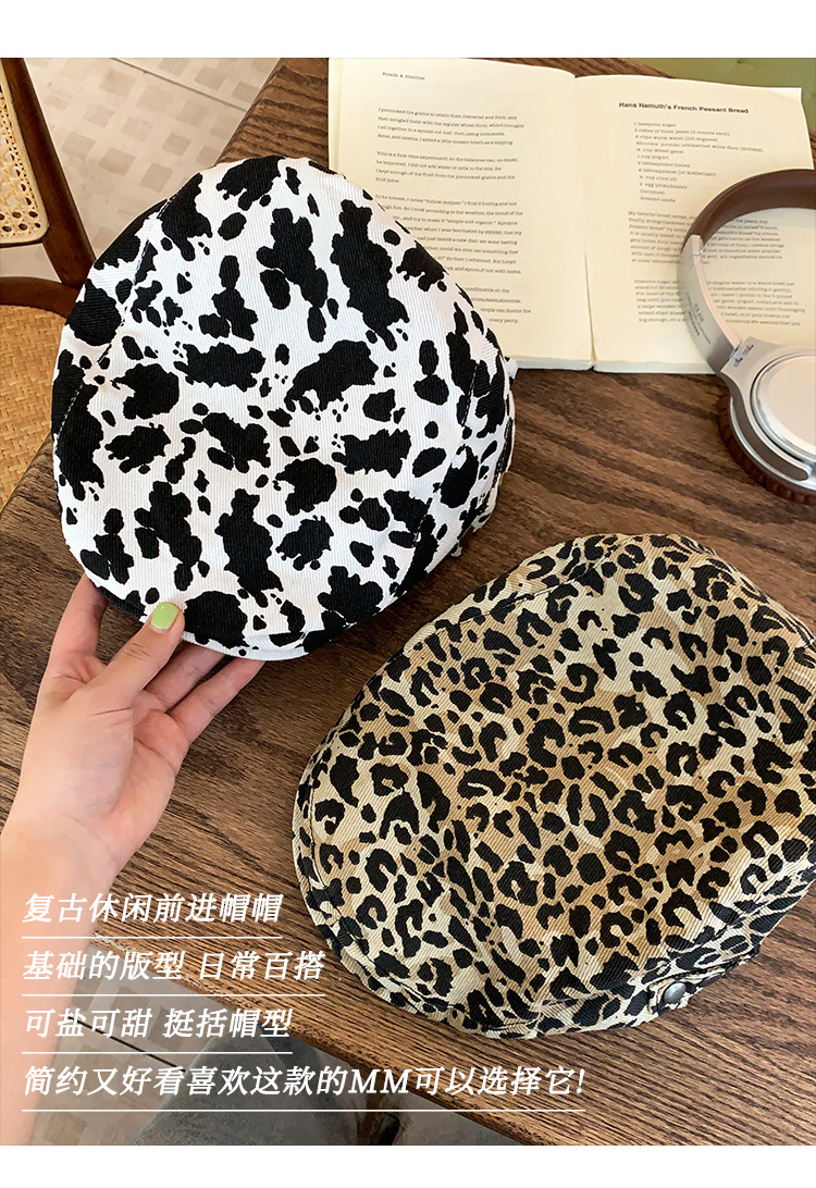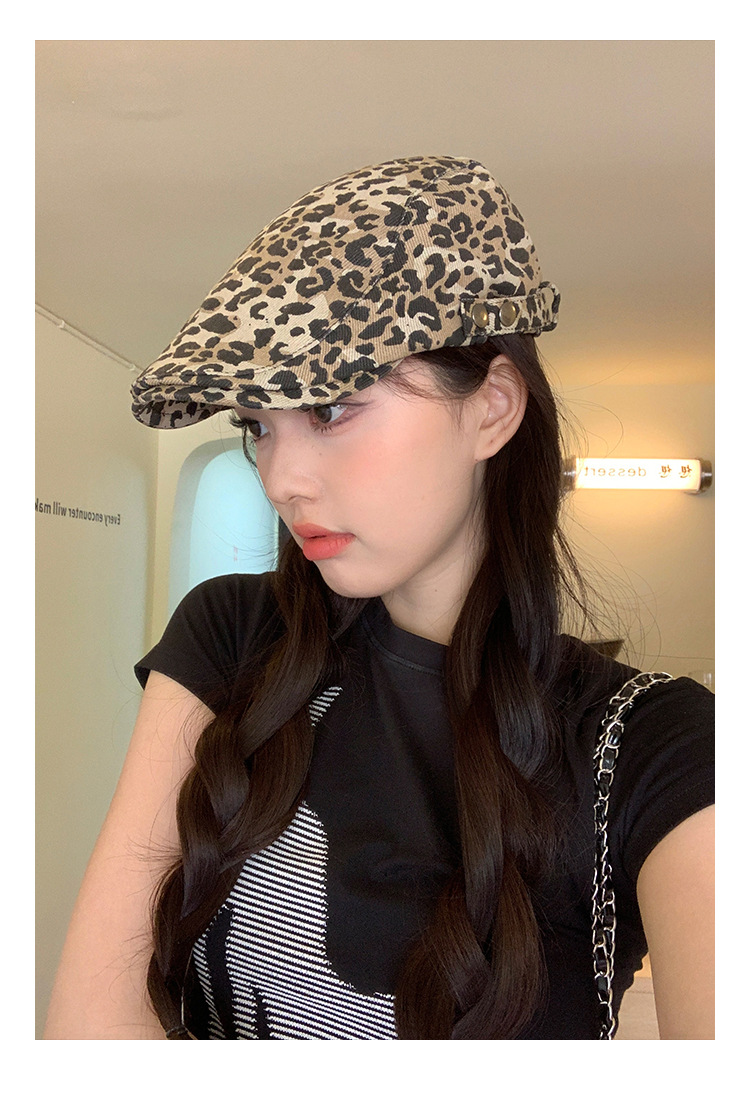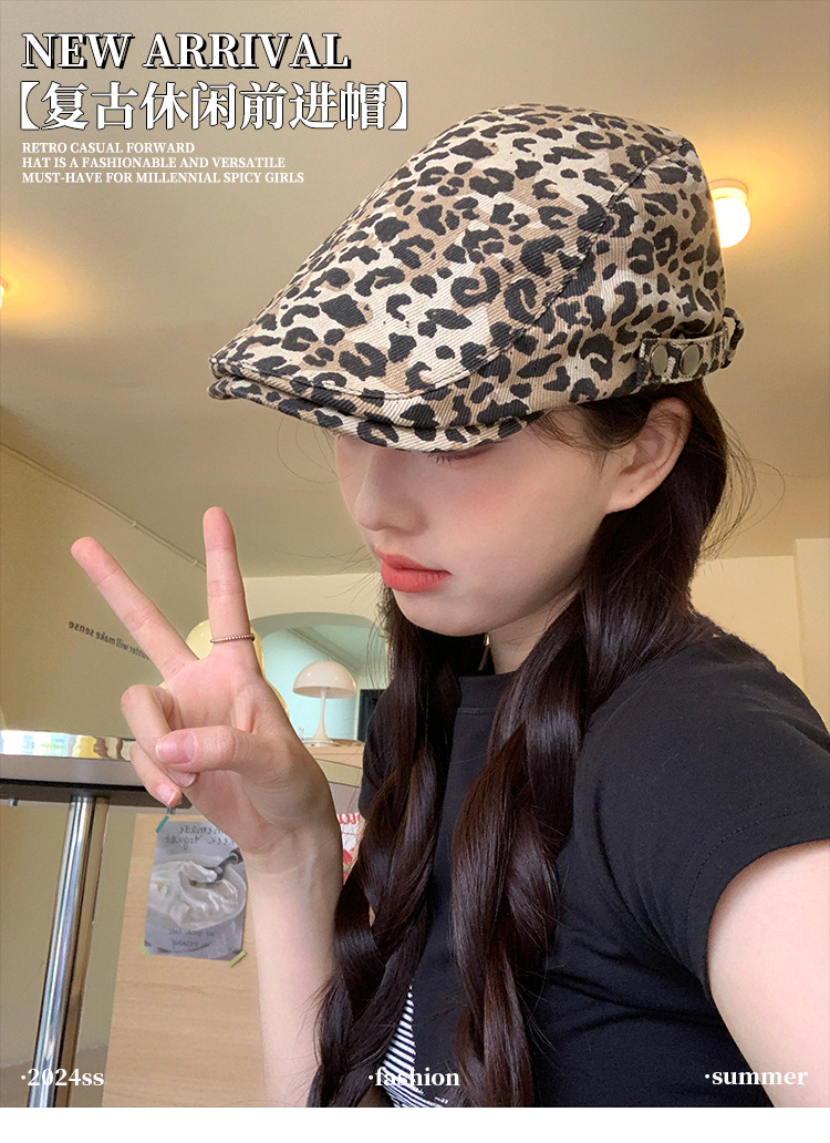 レトロ豹紋前進帽女春夏の個性的な顔のギャル鴨舌ベレー帽潮クール亜文化帽子
