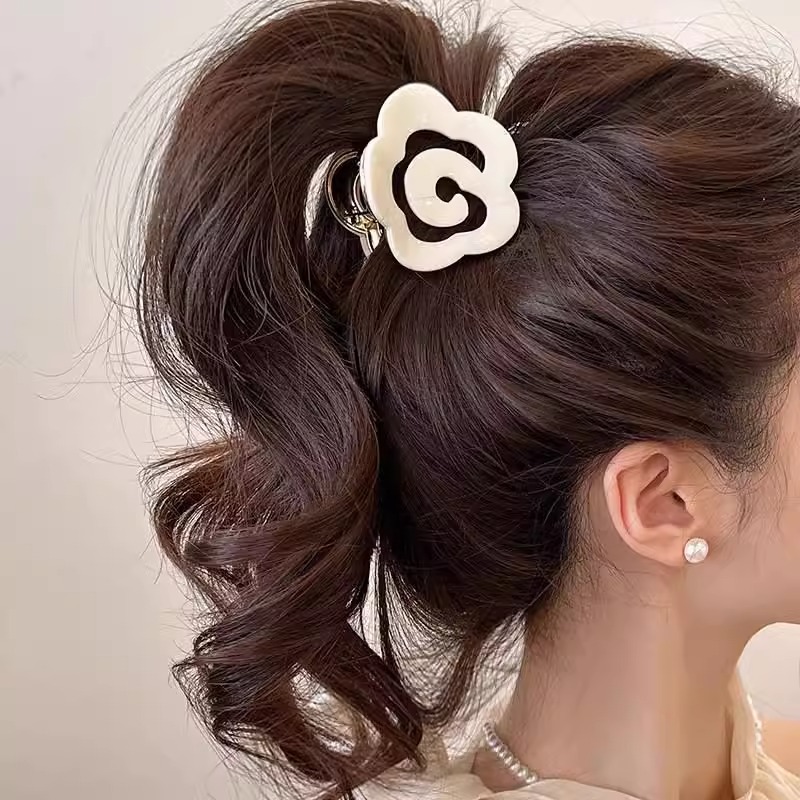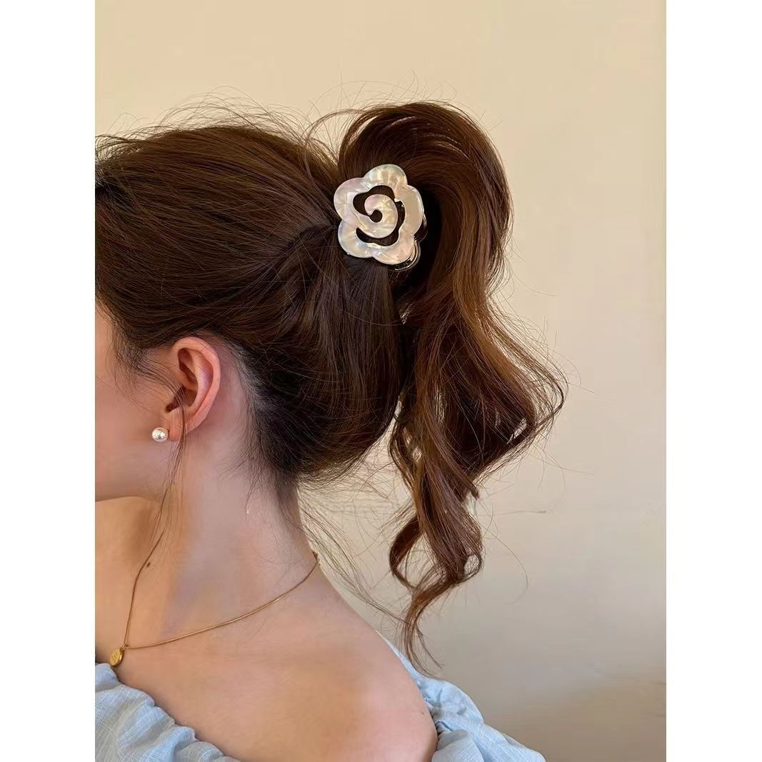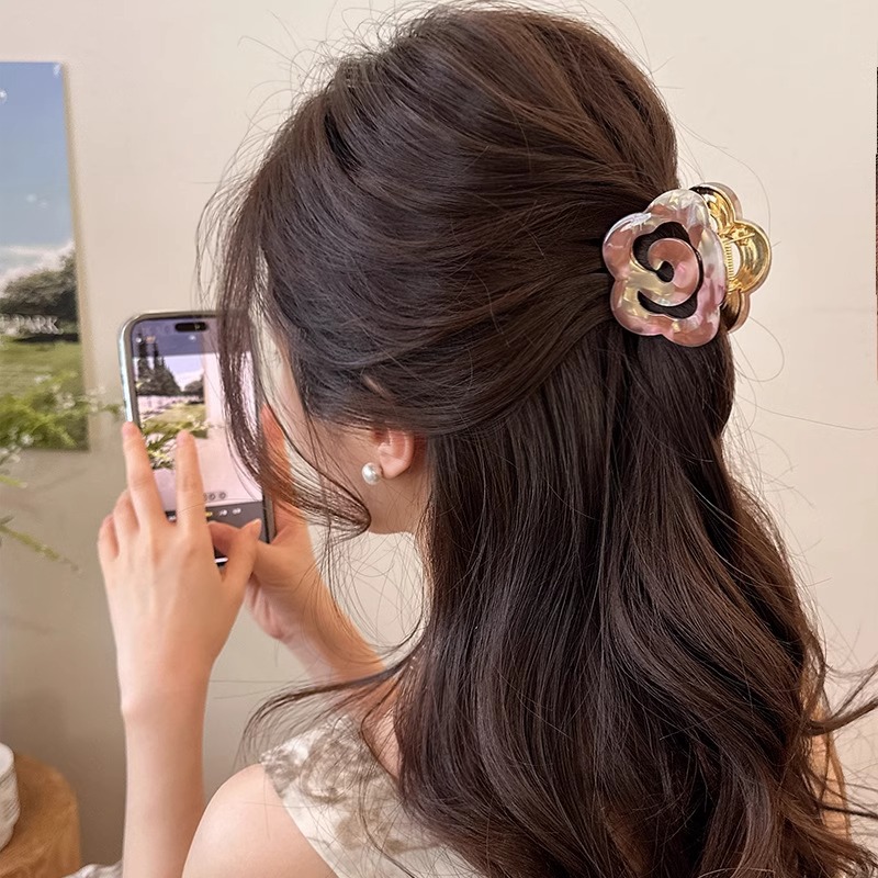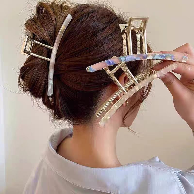 高級感酢酸一字ヘアクリップ女後頭部春夏髪量多盤髪クリップ大サイズサメクリップ頭飾り