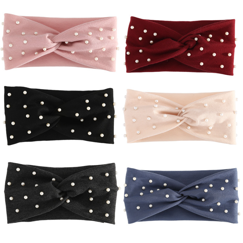 国境を越えた新しい真珠のヘアバンドの純色はシンプルで、交差弾力性のあるヘッドバンドの洗顔運動は汗を吸う布芸の頭飾りです。