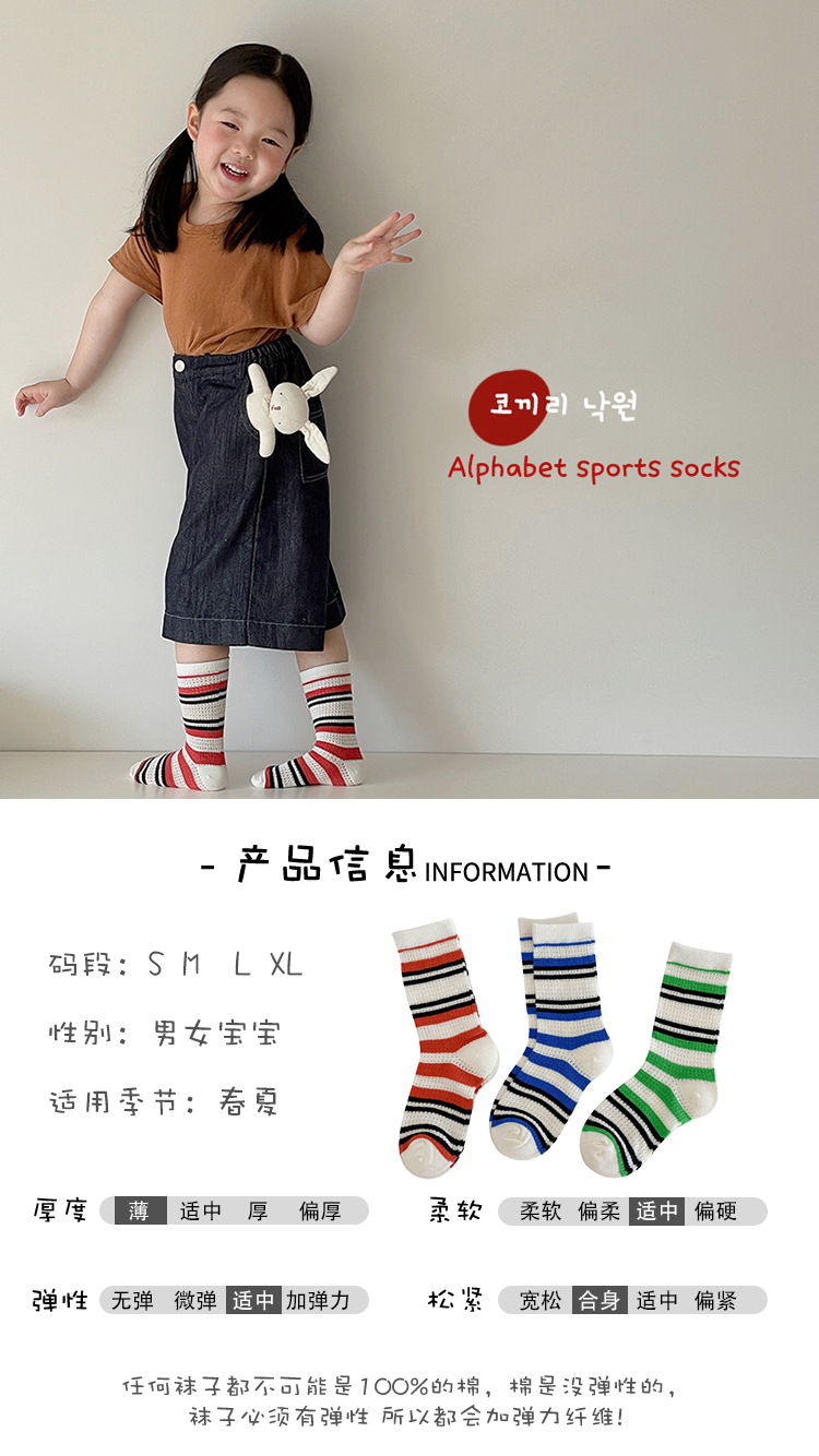 子供靴下コーマ綿女の赤ちゃん四季ベビーストライプメッシュ靴下漫画パターン女の子カレッジスタイルミッドチューブソックス
