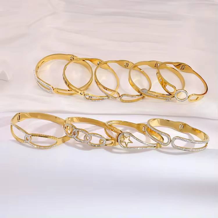 クロスボーダーハイエンドバックルメーカー女性卸売ジルコンゴールドフルダイヤモンド10ダイヤモンド非退色ジュエリーチタン鋼ブレスレット