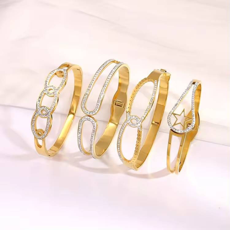 メーカー直販クロスボーダー卸売り18k金高級感満天星女性チタン鋼色落ちしないアクセサリーチタン鋼ブレスレット